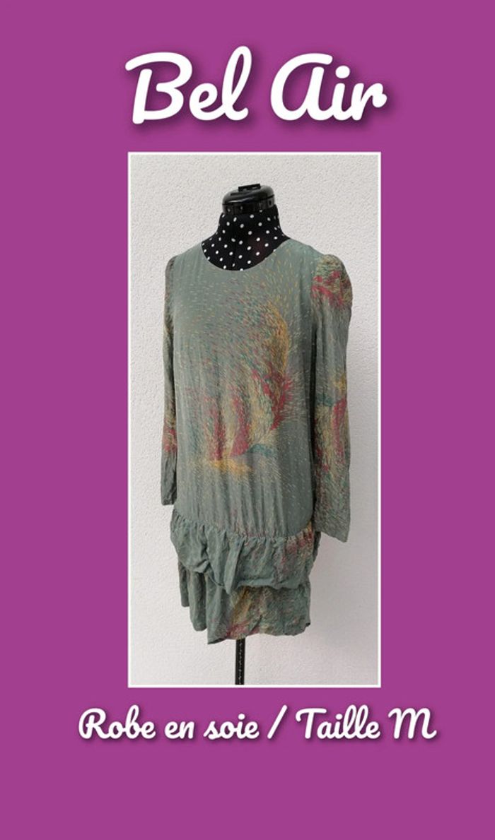 Robe courte 100% Soie kaki jaune rouge Taille M Bel Air - photo numéro 9