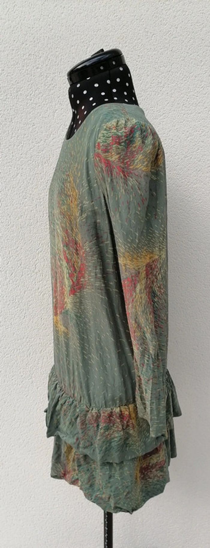 Robe courte 100% Soie kaki jaune rouge Taille M Bel Air - photo numéro 3
