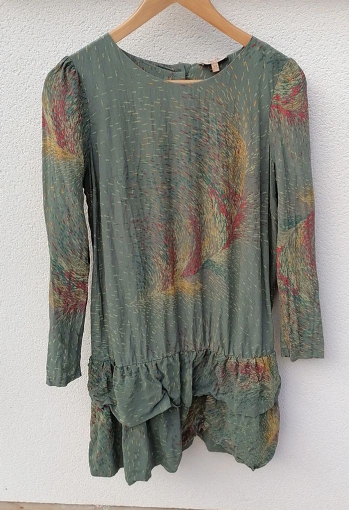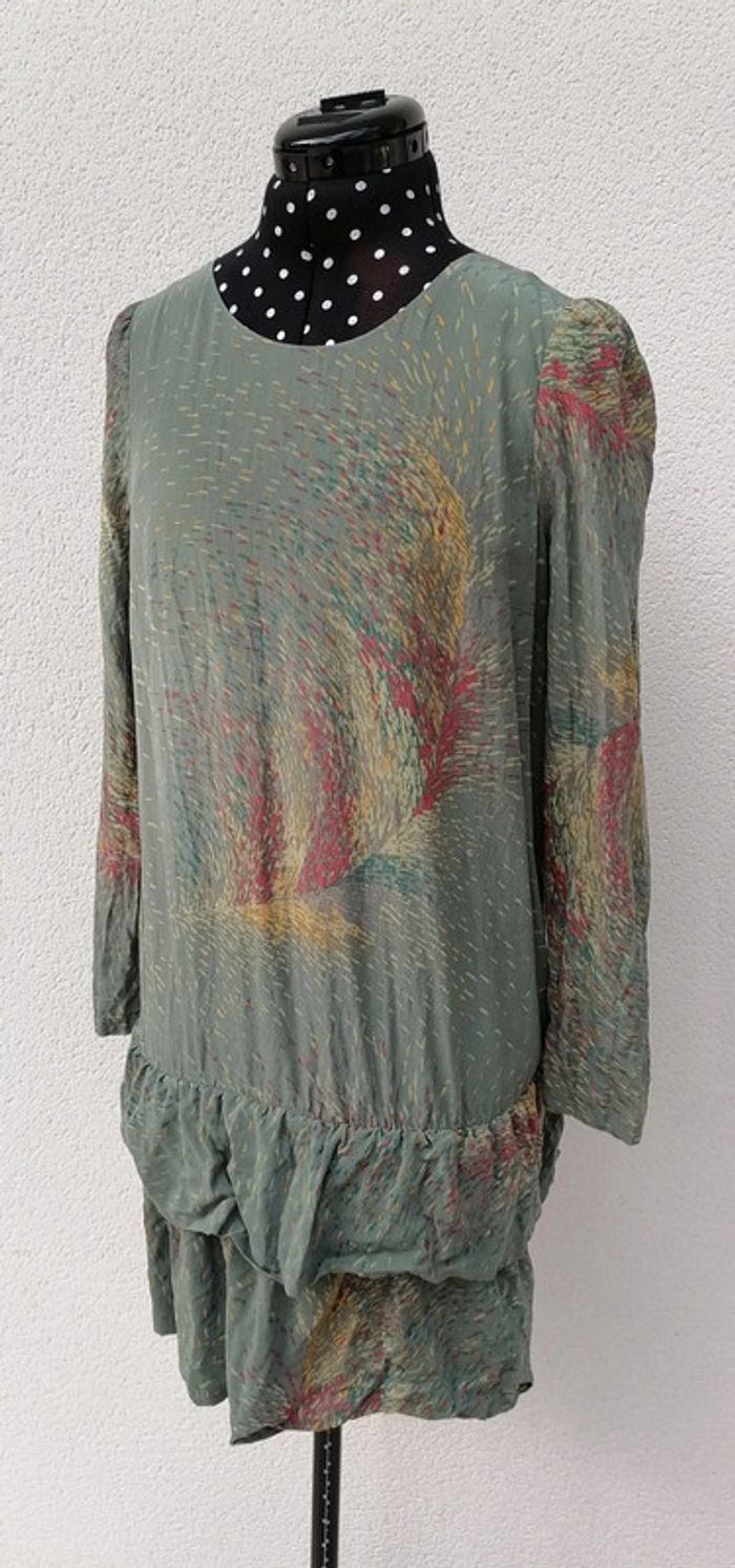Robe courte 100% Soie kaki jaune rouge Taille M Bel Air - photo numéro 2