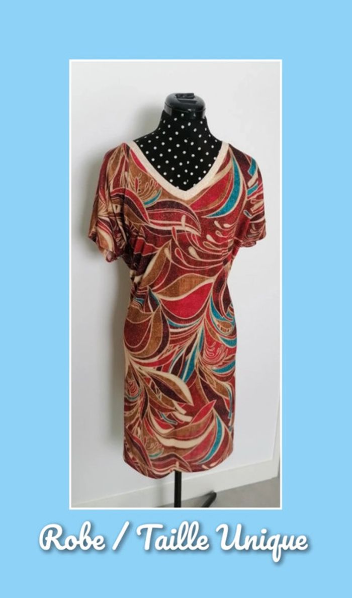 ⏩ Retrouvez toutes mes robes => #bizs33robe Superbe robe courte, mi-saison Fluide et légère Imprimé style art nouveau Rouge, beige, turquoise et doré Col rond, manches courtes Pas de fermeture, s'enfile simplement Tissu stretch Pas de doublure Taille unique Composition : 80% Viscose 10% Elasthanne 10% Polyester Mesures à plat : Longueur : 95 cm Aisselles : 66 cm Taille : 63 cm Hanches : 68 cm Prix d'achat ~ 45 € 🌟 Portée 1 ou 2 fois, en très bon état général 🌟 🎁🎁🎁 Ajoutez un article offert à votre commande, tous les articles "cadeau" à retrouver dans mon dressing ou le # dans ma description 🎁🎁🎁 #robe #été #jupetailleunique #tailleunique #taille40 #printemps #été #femme #bizs33 #bizs33robe #turquoise #rouge #doré #bizs33tailleunique P23N30