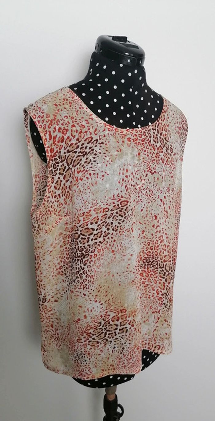 Blouse légère fluide léopard safari rouge beige blanc Taille 3XL Vintage - photo numéro 8