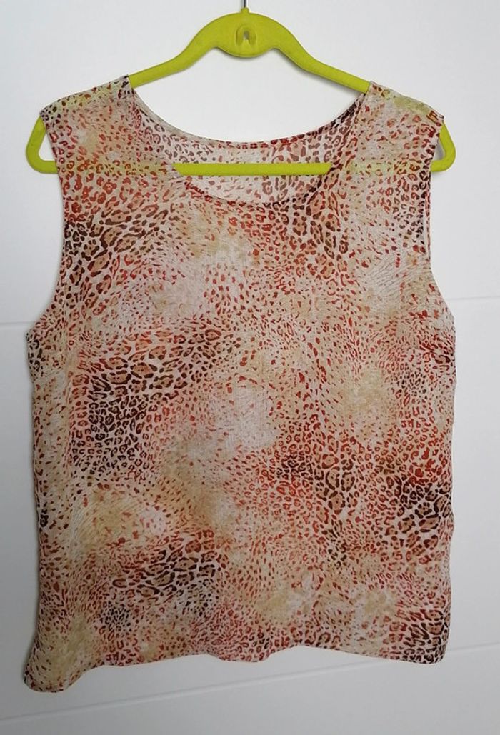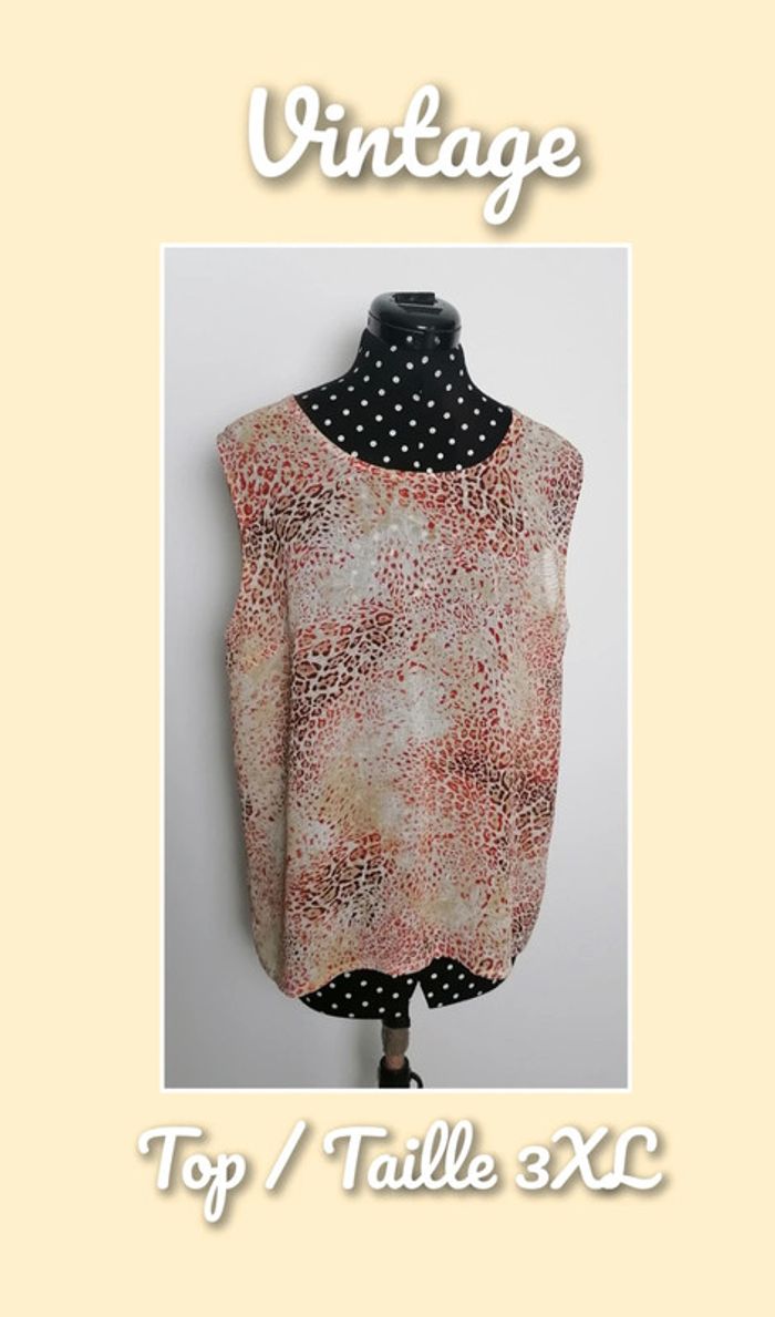 Blouse légère fluide léopard safari rouge beige blanc Taille 3XL Vintage