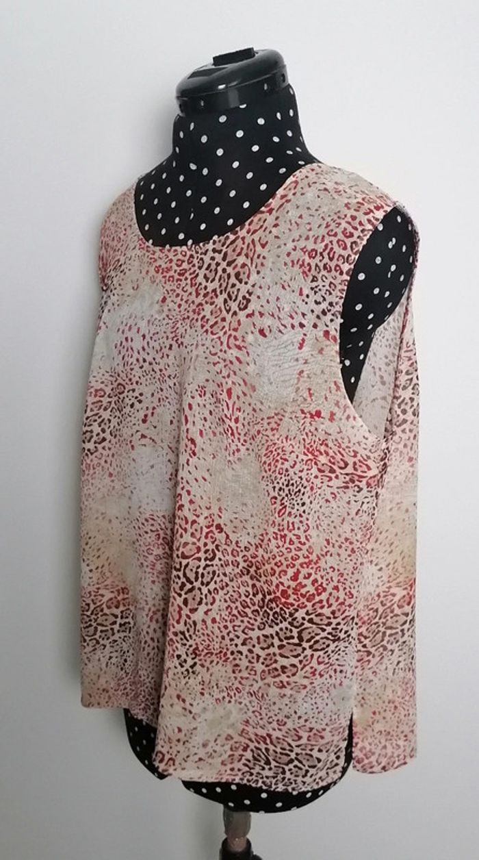 Blouse légère fluide léopard safari rouge beige blanc Taille 3XL Vintage - photo numéro 2
