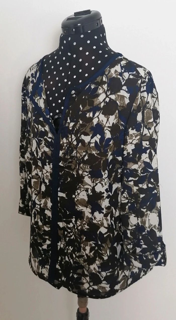 Blouse bleu kaki blanc motif feuilles fluide Taille XXL JBC - photo numéro 9