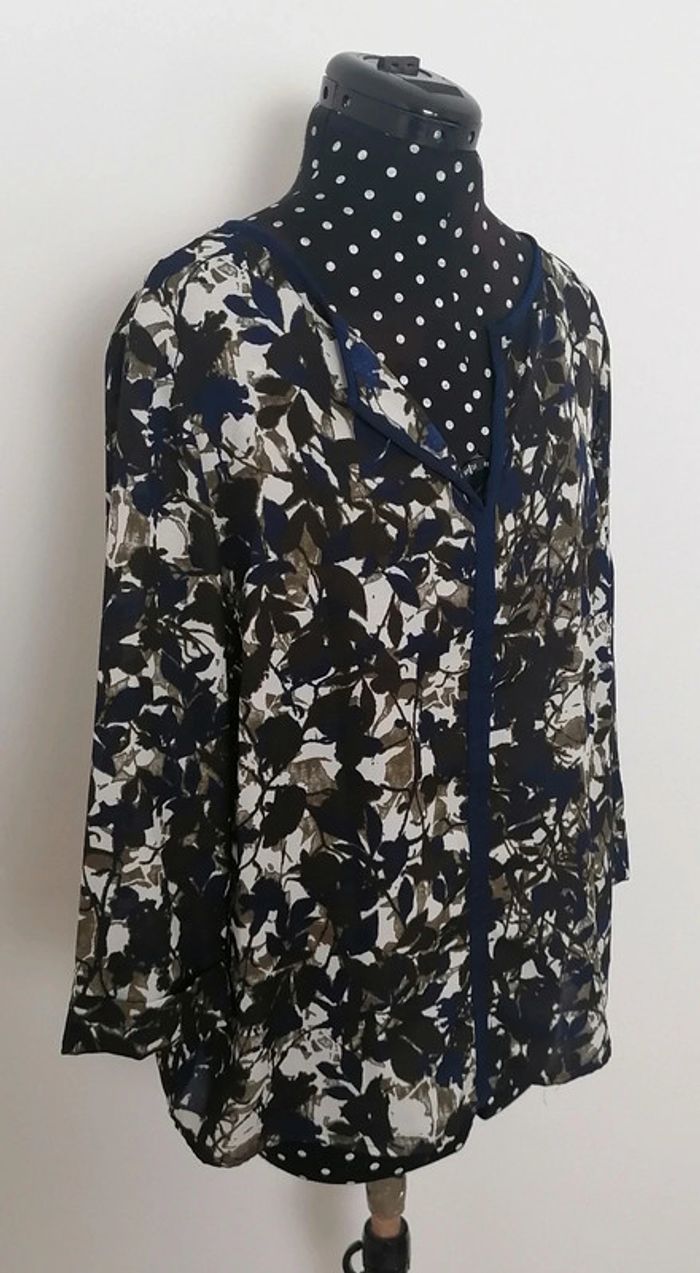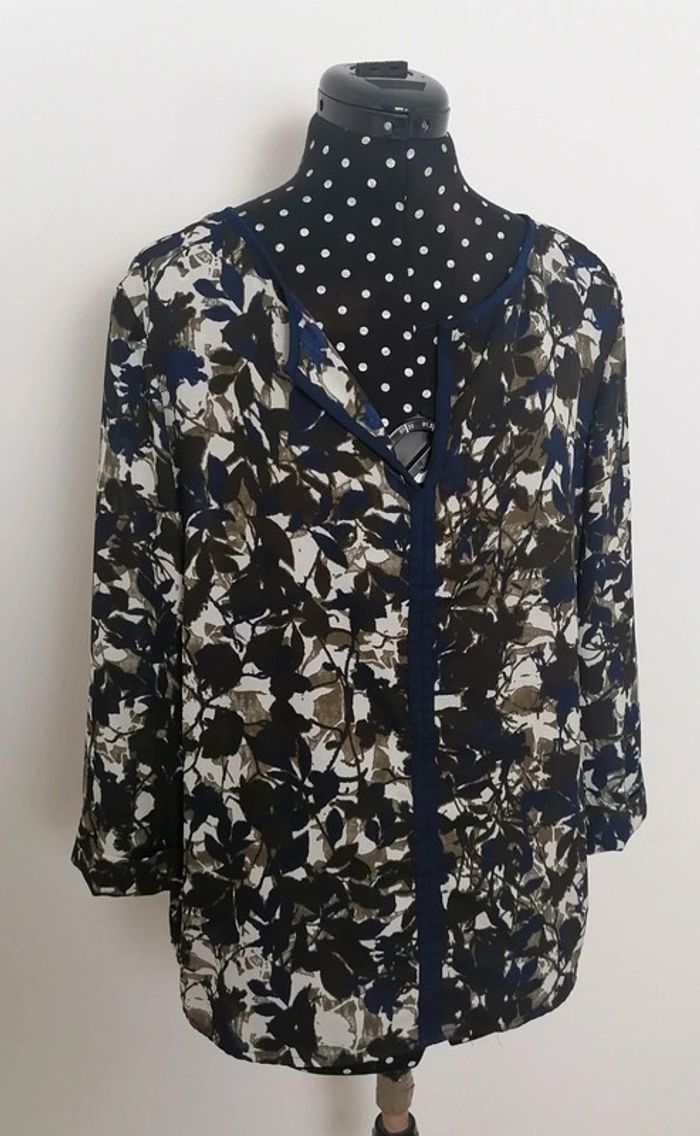 Blouse bleu kaki blanc motif feuilles fluide Taille XXL JBC