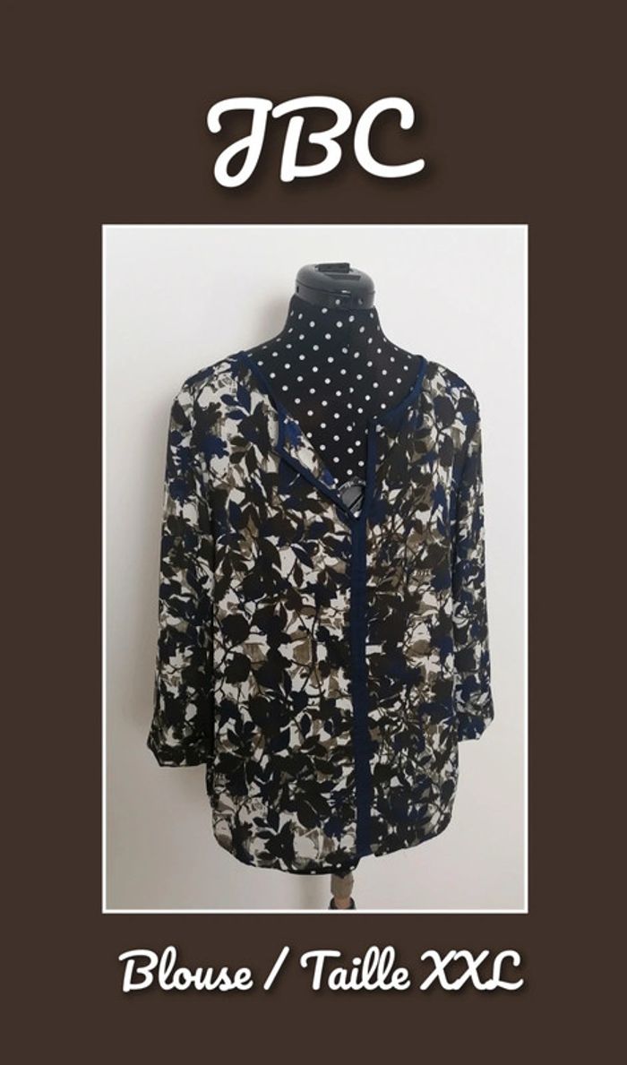 Blouse bleu kaki blanc motif feuilles fluide Taille XXL JBC - photo numéro 1
