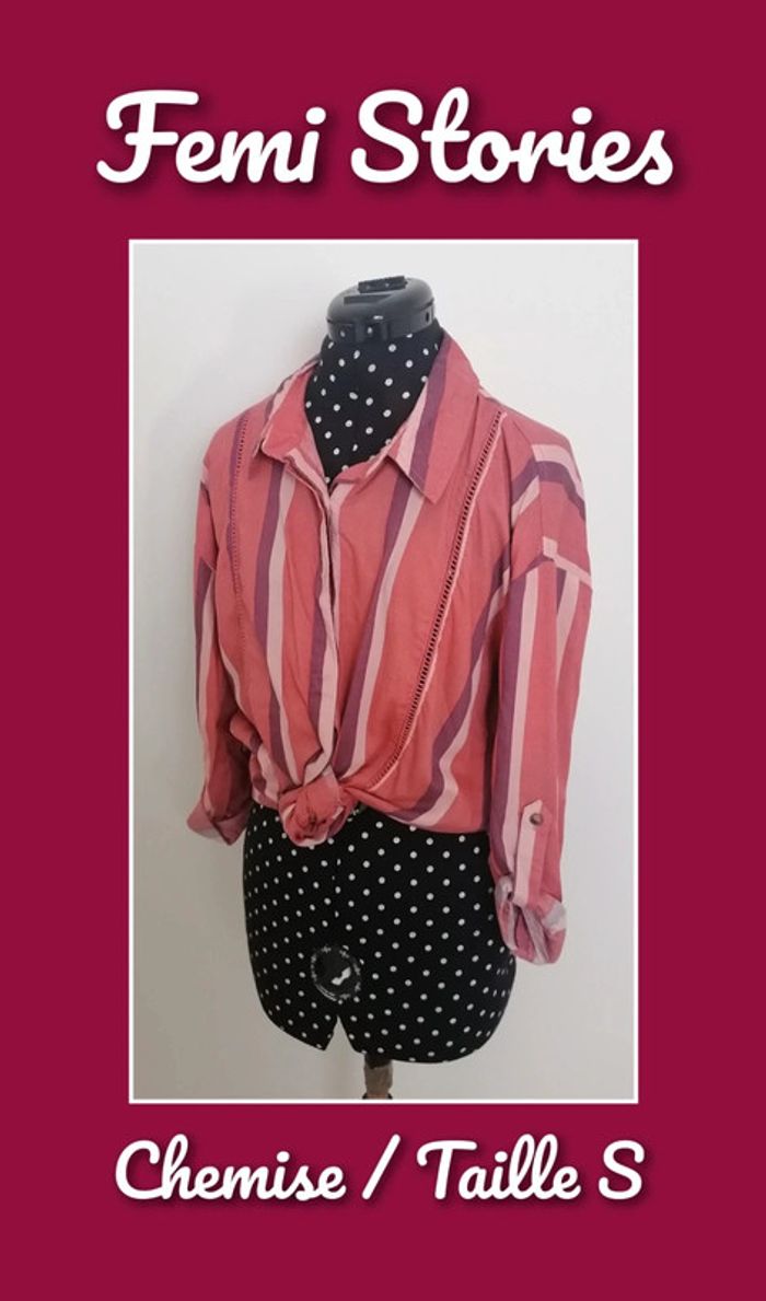 Chemise longue lignes verticales ajouré rose violet Taille S Femi Stories - photo numéro 1
