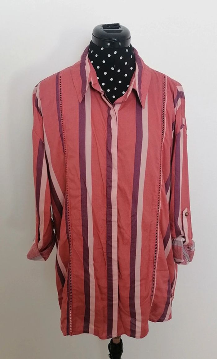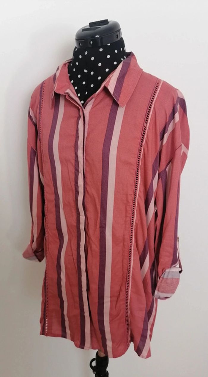 Chemise longue lignes verticales ajouré rose violet Taille S Femi Stories - photo numéro 3