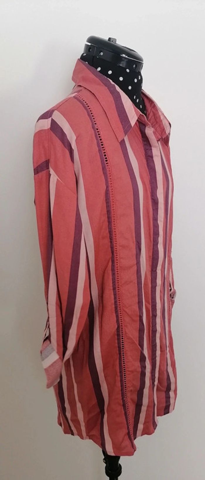 Chemise longue lignes verticales ajouré rose violet Taille S Femi Stories - photo numéro 12
