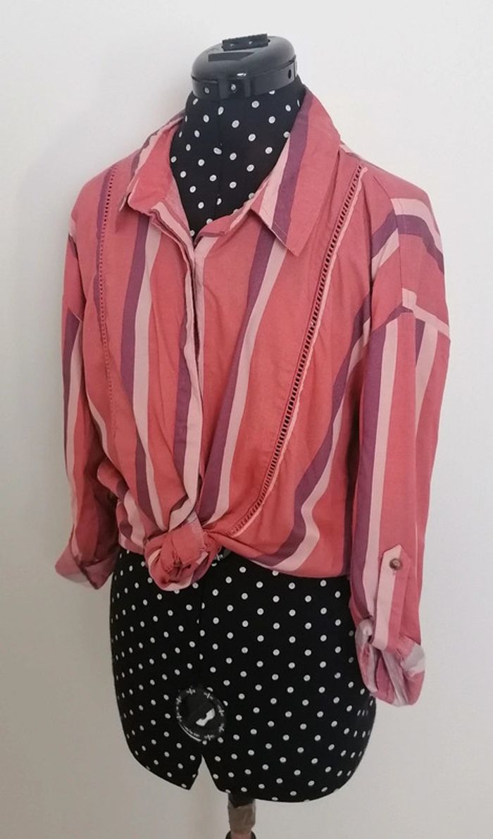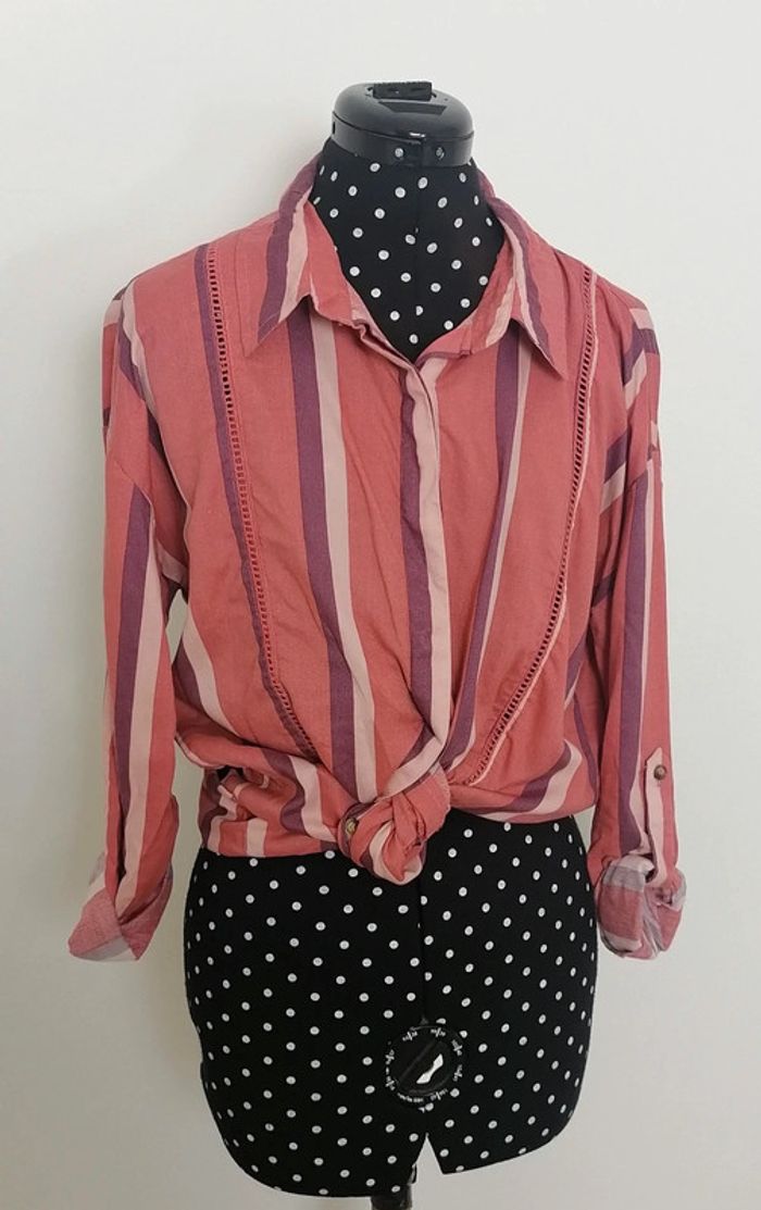 Chemise longue lignes verticales ajouré rose violet Taille S Femi Stories - photo numéro 2