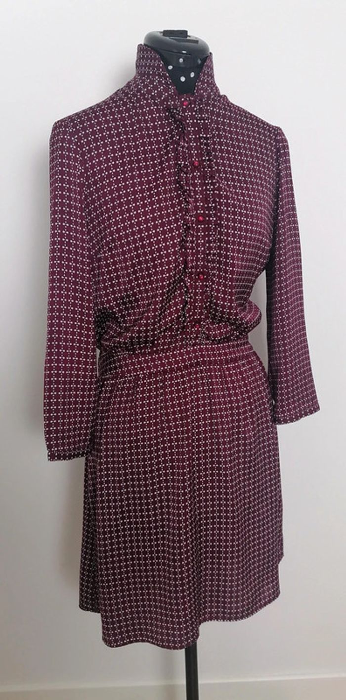 Robe fluide légère Bordeaux blanc Imprimé Géométrique Taille M Nafnaf - photo numéro 2
