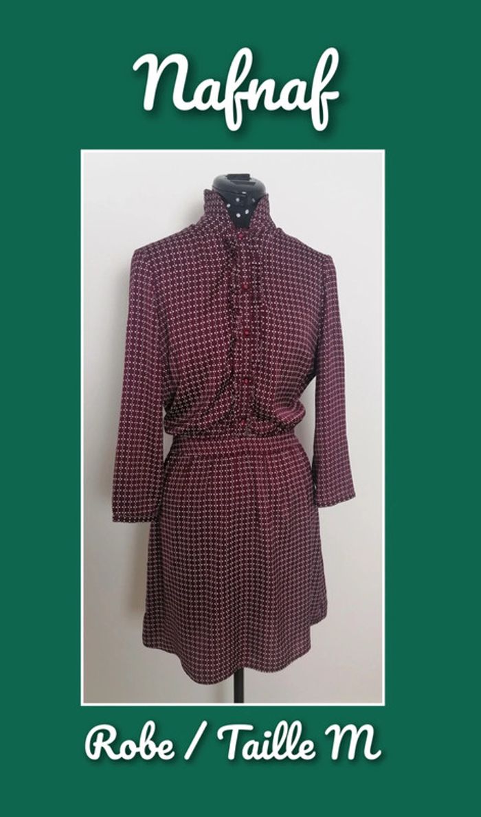 Robe fluide légère Bordeaux blanc Imprimé Géométrique Taille M Nafnaf