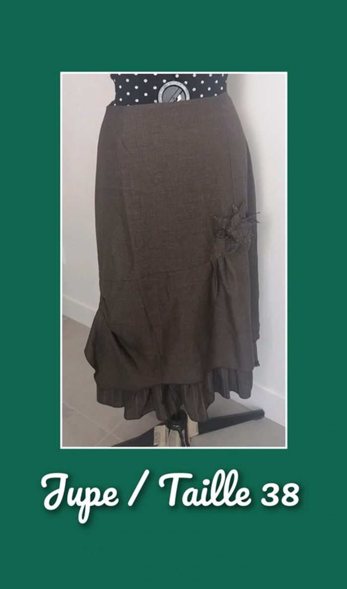 Jolie jupe longue, à volant Empiècements asymétriques, décor fleurs en tissus Couleur marron Tissu non extensible, taille non élastique Taille 38 (taille petit, voir dimensions en dessous) Composition : 65% Polyester 35% Viscose Doublure : 100% Polyamide Mesures à plat : Taille : 34 cm Hanches : 50 cm Longueur : 85 cm Prix d'achat : 70€ 🌟 Peu portée, excellent état général 🌟 🎁🎁🎁 Ajoutez un cadeau à votre commande, tous les détails dans ma description "a propos" ou dans les annonces avec inscription "gratuit" 🎁🎁🎁 #fashion #top #haut #jupelongue #taille38 #automne #marron #vintage #asymétrique #jupe #chic #casual #printemps #été #bizs33 #bizs33jupe #bizs33taille38 #bizs33taillem P12N85