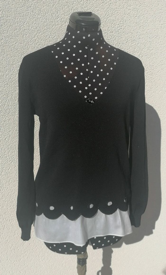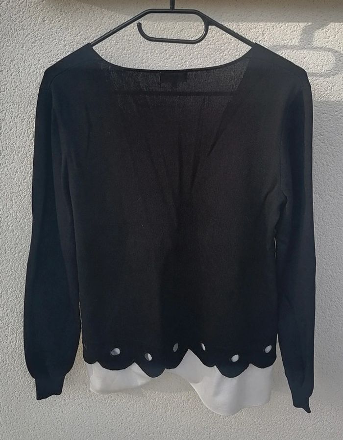 ⏩ Tous mes articles en Taille S => #bizs33taille36 / tous mes pulls => #bizs33pull Superbe pull léger bas effet chemise Couleur noir et blanc Manches longues, col en V Tissu stretch Claudie Pierlot Taille 1 = S Composition : 65% Viscose 35% Polyamide Prix d'achat ~ 150€ Mesures à plat : Epaules : 40 cm Aisselles : 46 cm Longueur : 64 cm Manche : 58 cm Emmanchure : 20 cm 🌟 Porté quelques fois, quelques signe d'usure mais en très bon état général 🌟 🎁🎁🎁 Ajoutez un article offert avec votre achat, retrouvez tous les articles "cadeau" dans mon dressing ou dans ma description 🎁🎁🎁 #top #chic #haut #casual #printemps #pull #noir #blanc #bizs33tailles #bizs33tailles #bizs33pull #bizs33 P22N42