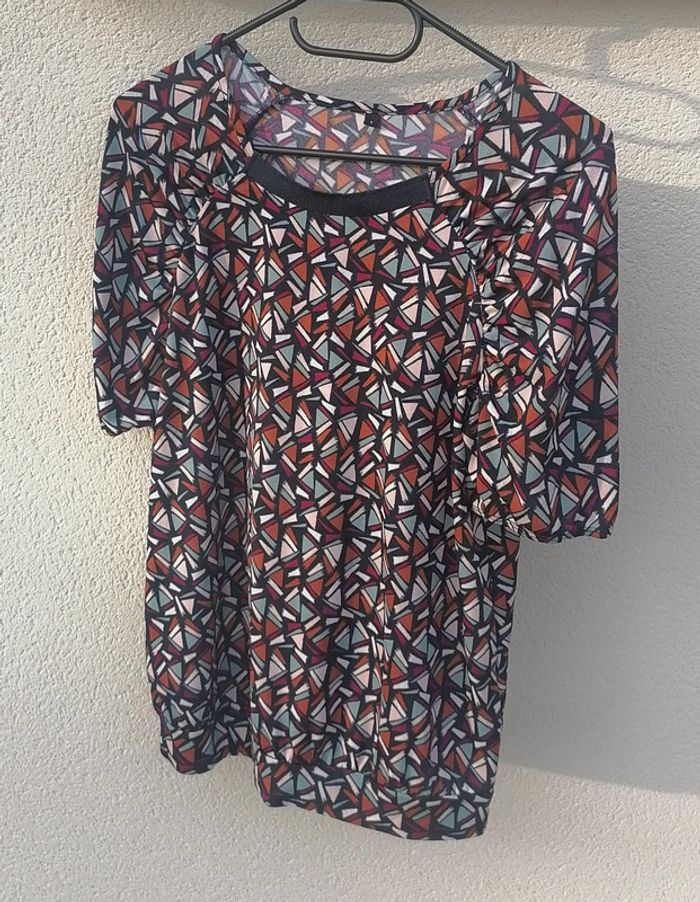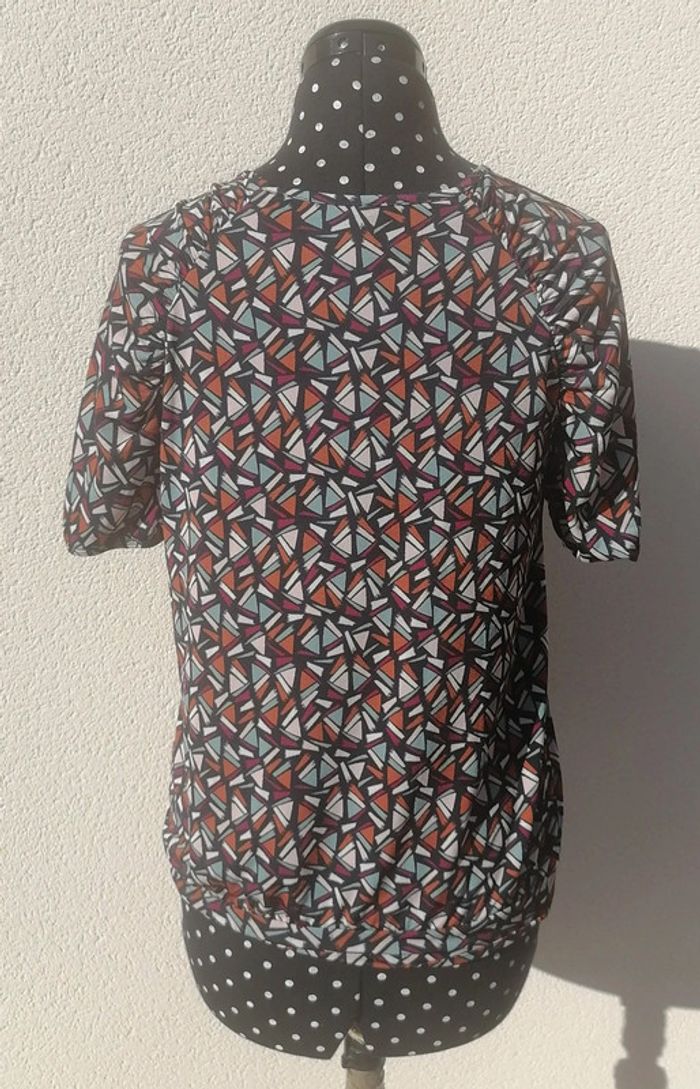 Top / tee-shirt géométrique bleu orange bordeaux crème Taille S - photo numéro 2