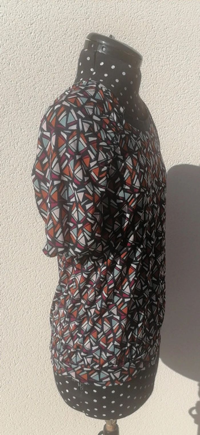 Top / tee-shirt géométrique bleu orange bordeaux crème Taille S - photo numéro 8