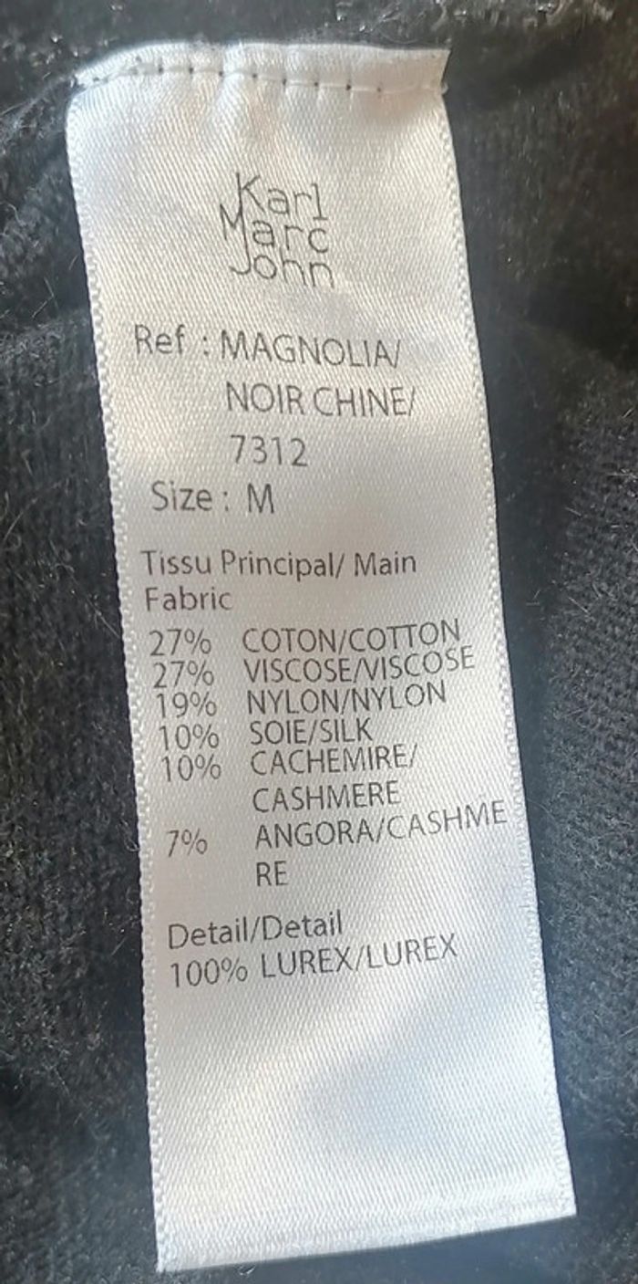 Composition : 27% Coton 27% Viscose 19% Nylon 10% Soie 10% Cachemire 7% Angora