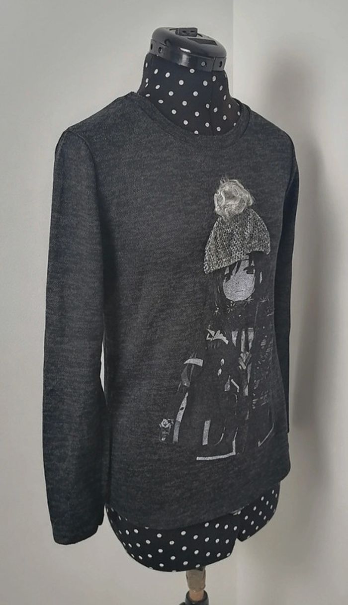 Pull petite fille à pompons gris Taille M - photo numéro 2
