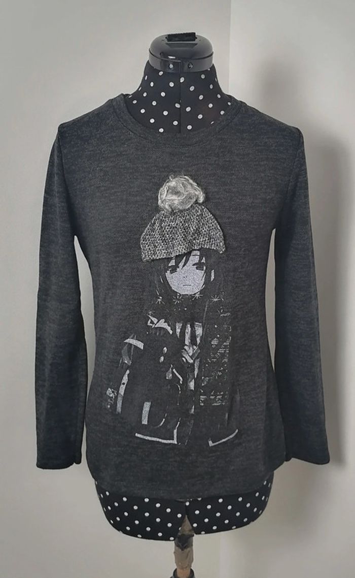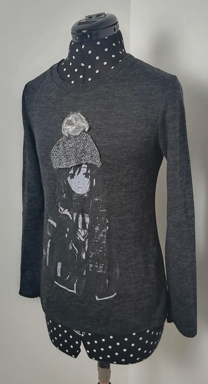 Pull petite fille à pompons gris Taille M - photo numéro 1