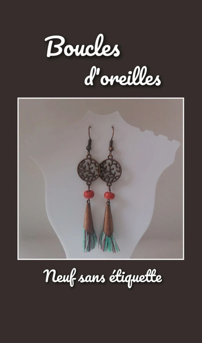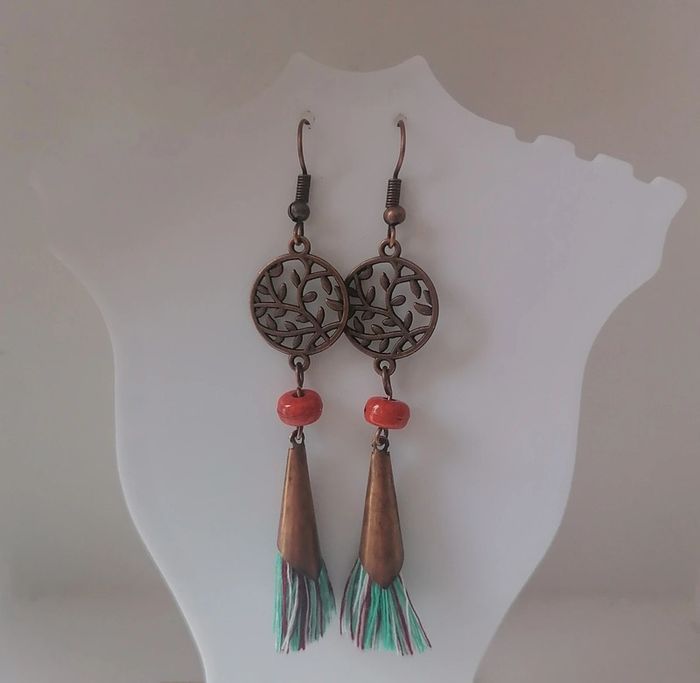 Boucles d'oreilles / bijoux cuivre turquoise orange - photo numéro 3