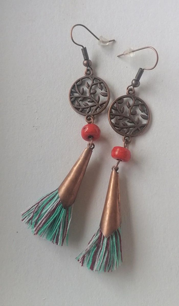 Boucles d'oreilles / bijoux cuivre turquoise orange
