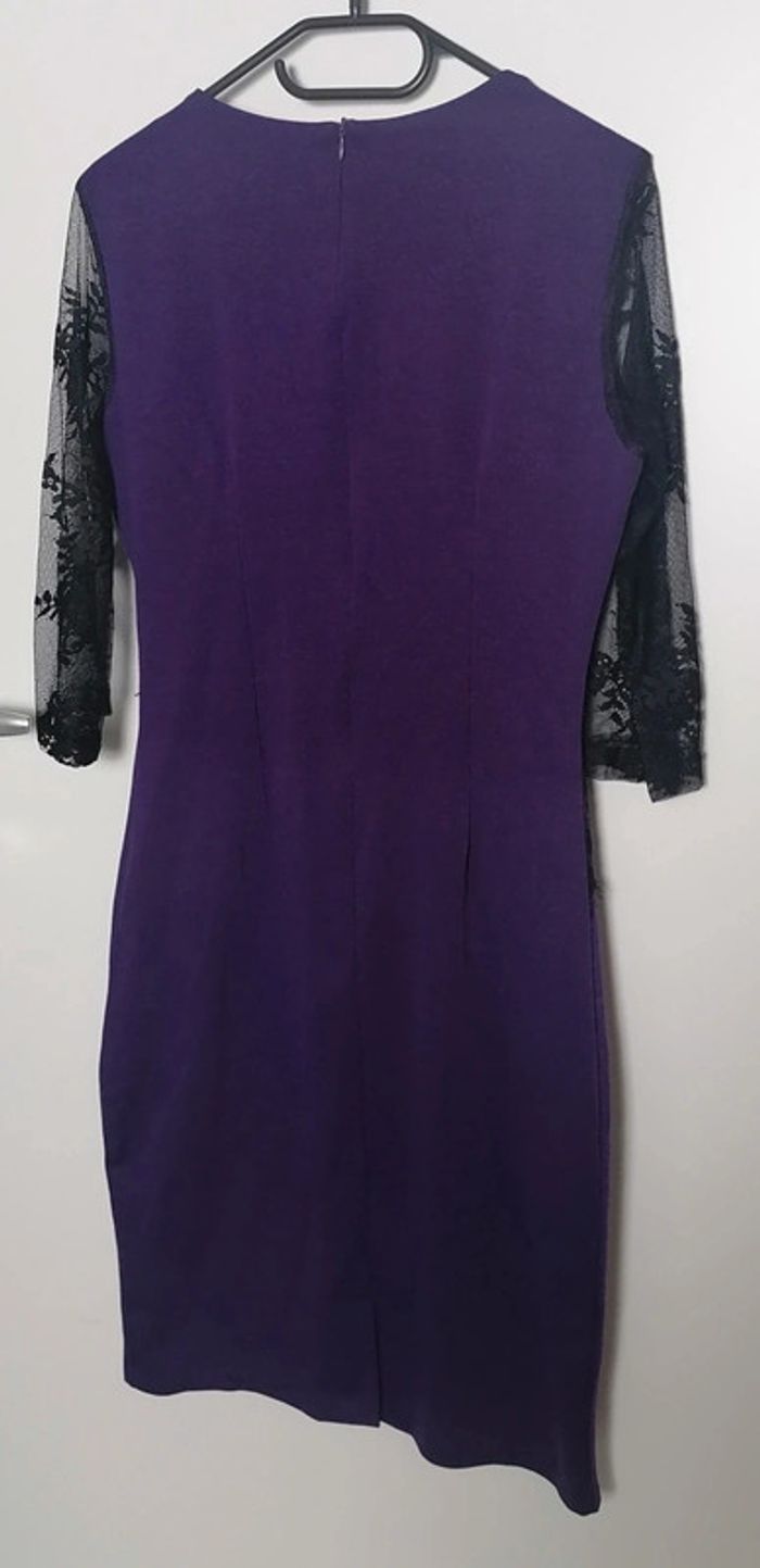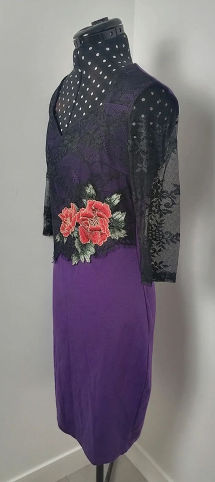 Robe moulante violet dentelle noire broderie fleurs rouge vert Taille XL Oxiuli Fashion - photo numéro 5