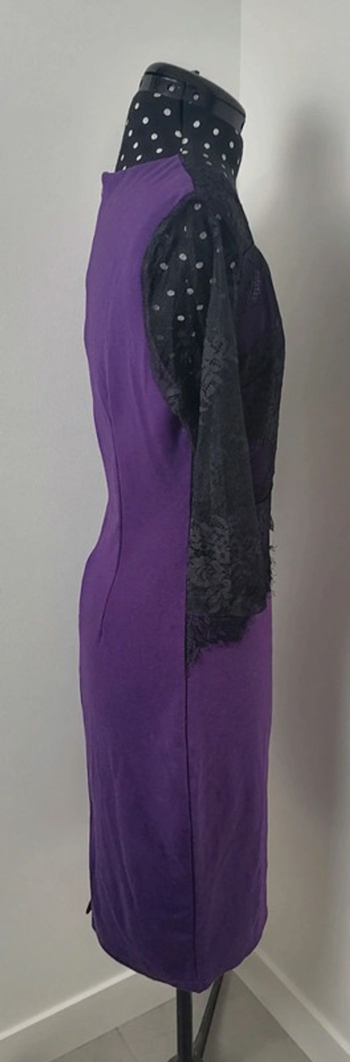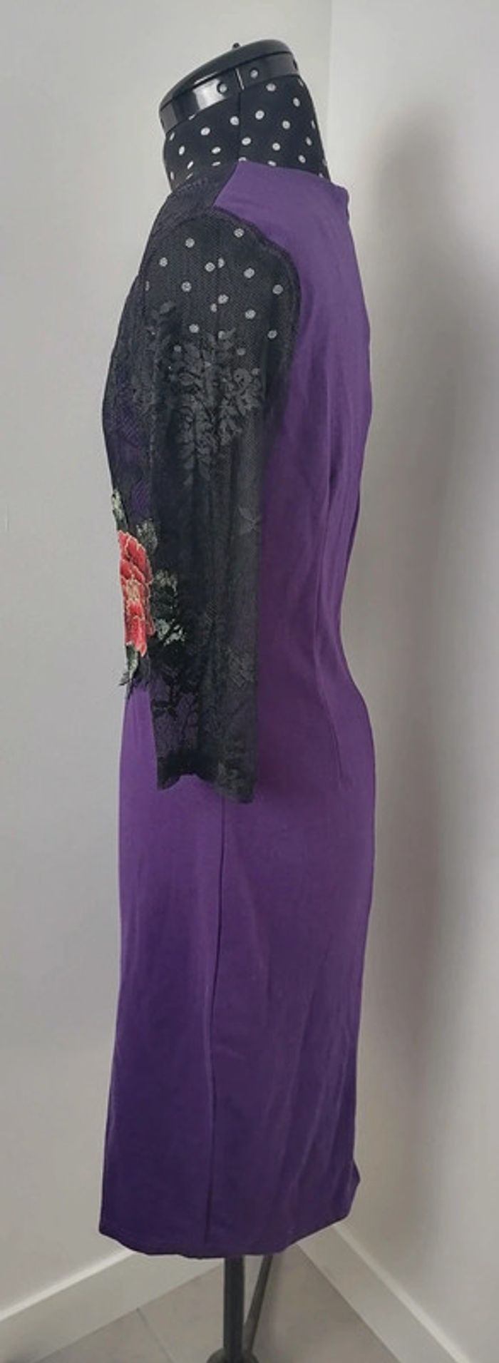 Robe moulante violet dentelle noire broderie fleurs rouge vert Taille XL Oxiuli Fashion - photo numéro 9