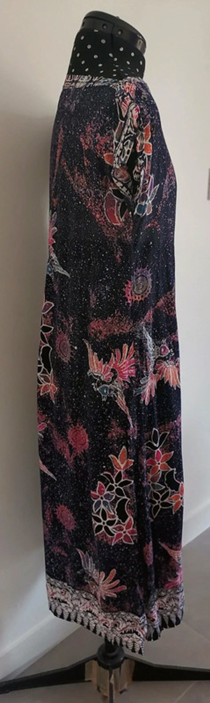 Robe d'été ciel étoilé fleurs bleu marine rose blanc orange Taille L Fait Main - photo numéro 3