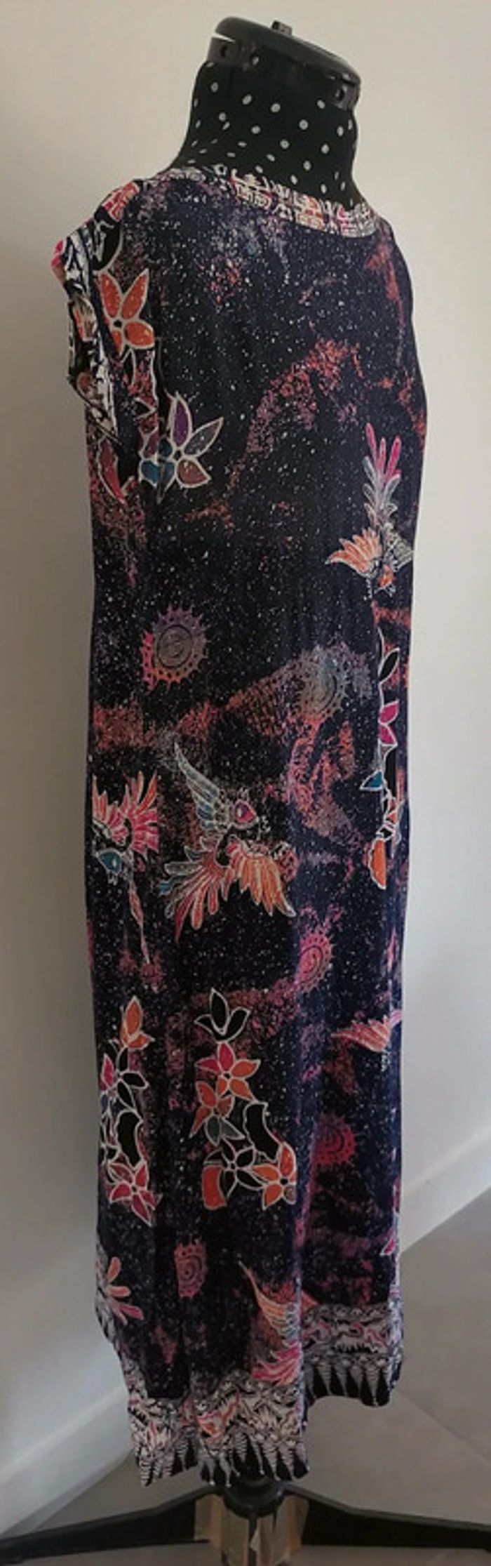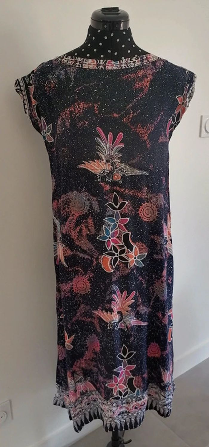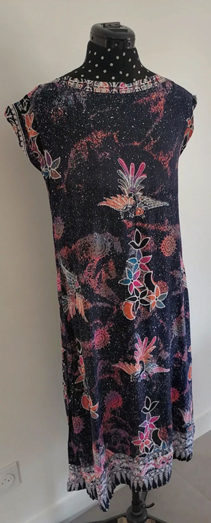 Robe d'été ciel étoilé fleurs bleu marine rose blanc orange Taille L Fait Main - photo numéro 1