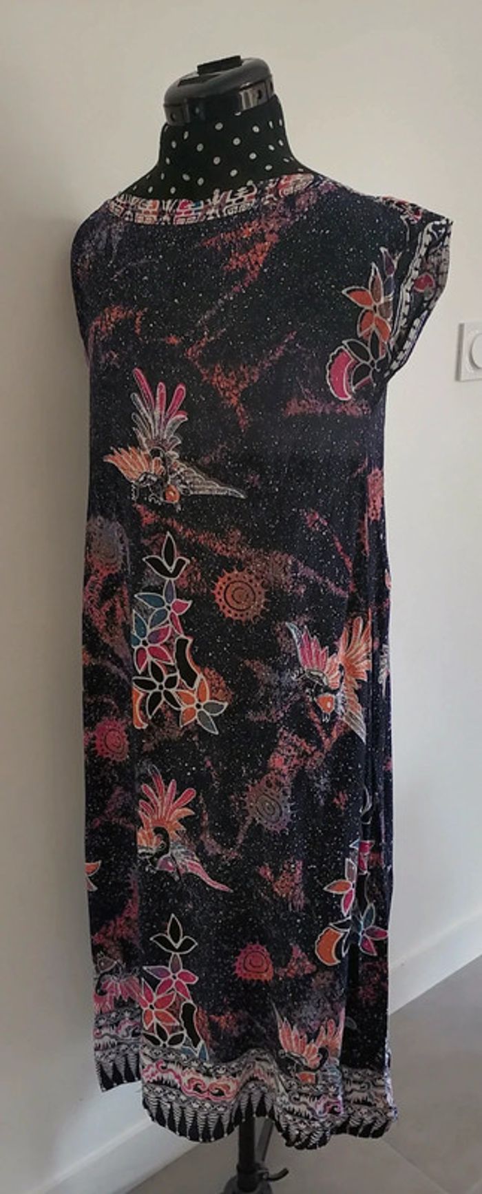 Robe d'été ciel étoilé fleurs bleu marine rose blanc orange Taille L Fait Main - photo numéro 2