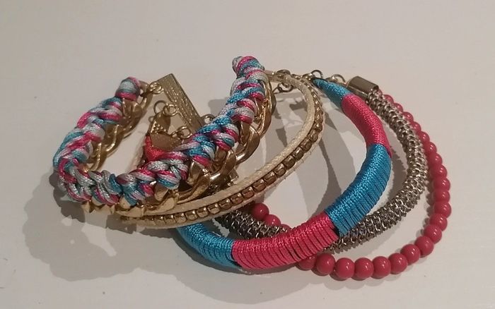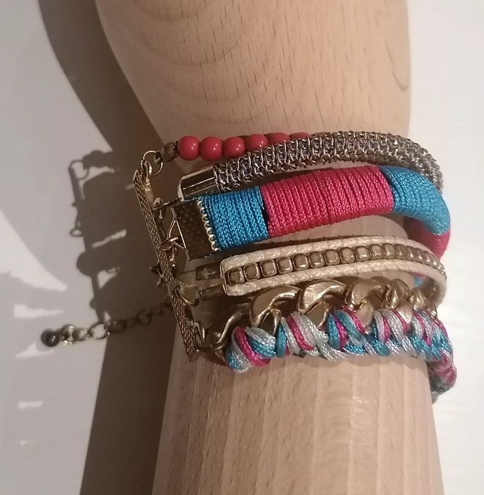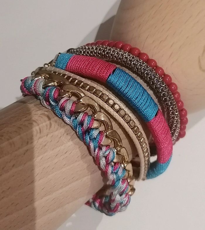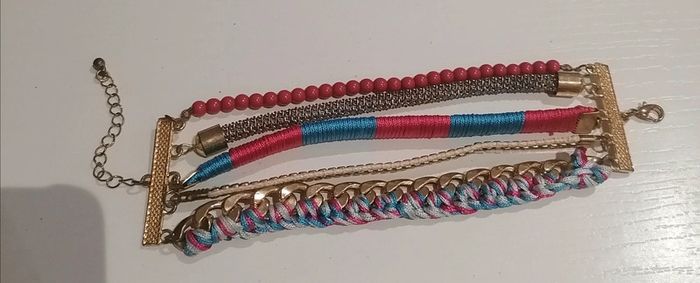 🎁 Gratuit pour tout achat à partir de 8€ 🎁 Constituez un lot de minimum 8€ avec cet article, je ferai la réduction manuellement Ou 3€ vendu seul Bracelet à multi-rangs doré, turquoise et rose Largeur : 5 cm Longueur : 14 cm Chaînette : 5 cm 🌟 Porté quelques fois mais en très bon état 🌟 #turquoise #bleu #doré #rose#bizs33cadeau #accessoire #bizs33accessoires #bracelet #vintedgift #bizs33bijoux