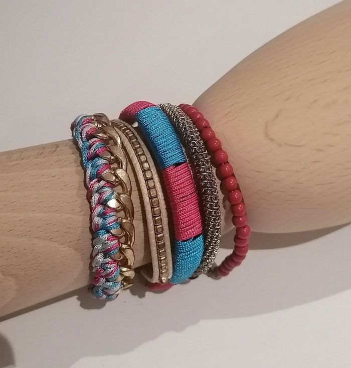 Bracelet multi-rangs doré turquoise rose - photo numéro 5