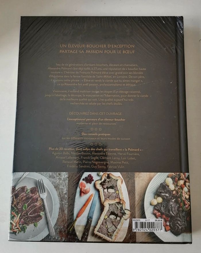 Un éleveur-boucher d'exception vous dit tout sur le bœuf ! Issu d'une famille de bouchers depuis 6 générations, Alexandre Polmard, 27 ans, s'est déjà taillé une réputation de " boucher haute couture ". Son pari ? Maîtriser l'ensemble de la chaîne pour façonner la viande la plus goûteuse possible, dans une vision raisonnée de l'élevage. De la sélection de la race de l'animal, de son mode de vie à son alimentation, du transport à l'abattage, puis de la maturation de la viande à sa transformation, il met ainsi tout en œuvre pour atteindre le plus haut niveau de perfection. Une qualité qui lui a permis de séduire les particuliers comme les chefs étoilés ! Découvrez dans ce livre : un reportage sur l'histoire familiale de l'entreprise, le parcours de l'auteur et de la viande (élevage, sélection, abattage, maturation, découpe...) des conseils pratiques et des infos clés autour de la viande de bœuf : les différentes races et leurs particularités, les morceaux, les cuissons et assaisonnements recommandés... 30 recettes de l'auteur et de chefs invités, parmi lesquels : Guy Savoy, Arnaud Lallement, Gérald Passédat, Frédéric Sandrini, Christophe Leroy Éditeur‎ : Grund Illustrated édition (26 octobre 2017) Langue‎Français Relié‎ 224 pages Poids de l'article‎ : 1,3kg Dimensions‎ : 22.1 x 3 x 29 cm Prix d'achat : 29.95€ 🌟 Neuf sous blister 🌟 #boucher #eleveur #recettes #photographie #conseils #bizs33 #bizs33loisirs #bizs33livre