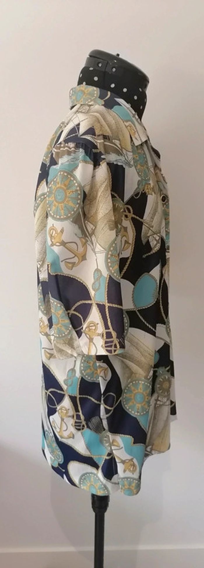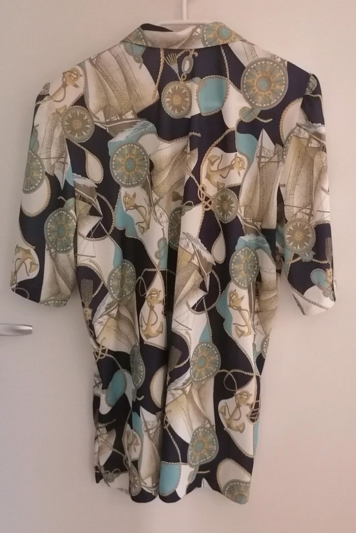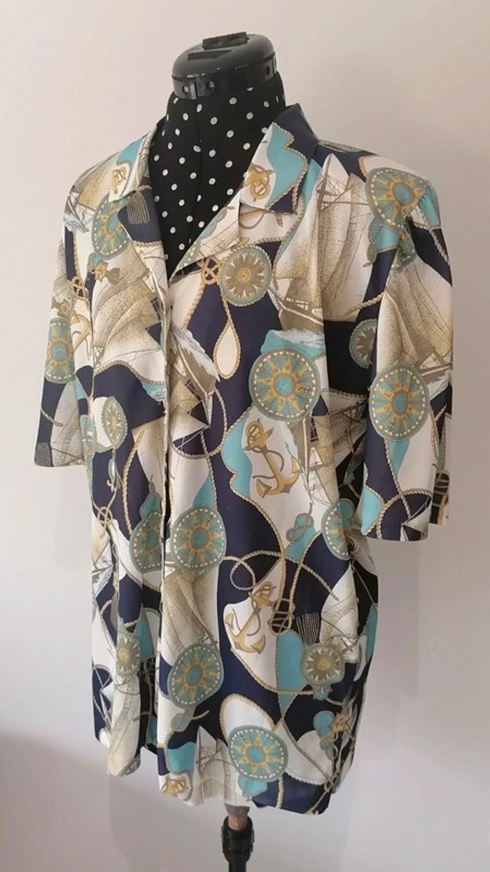 Chemisier marin boussoles, noeuds, ancres blanc bleu turquoise Taille L / XL oversize Vintage - photo numéro 7