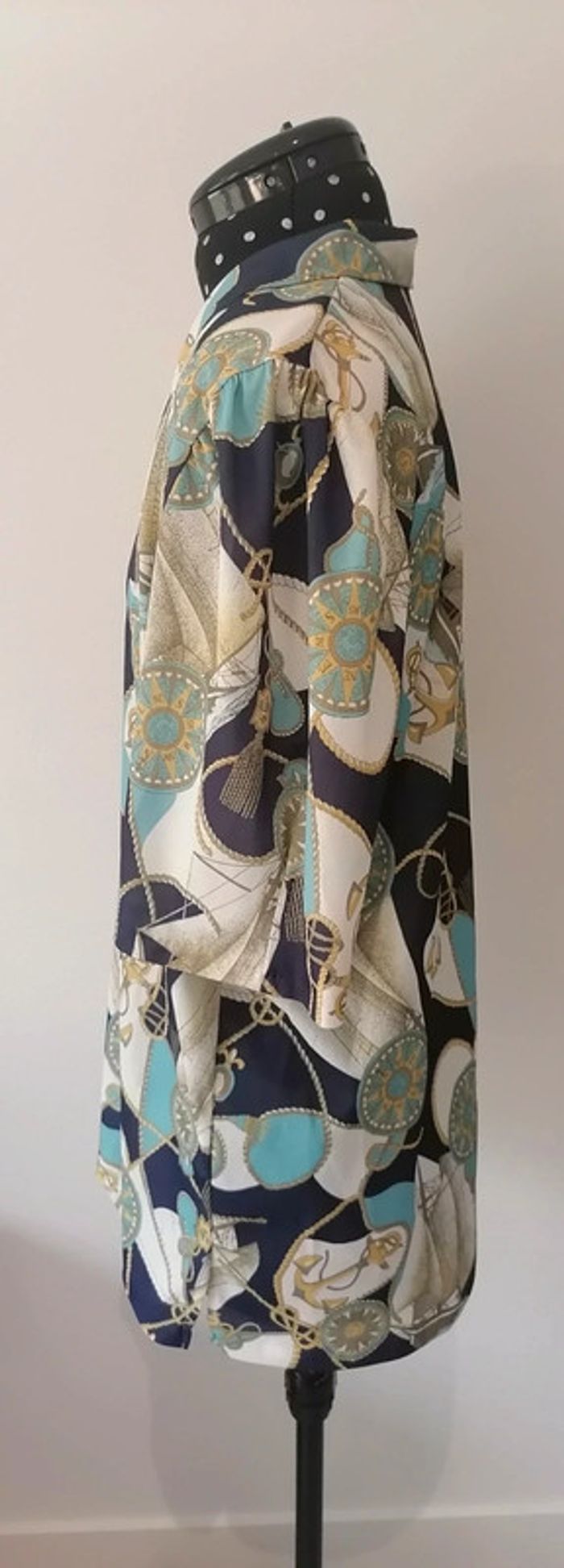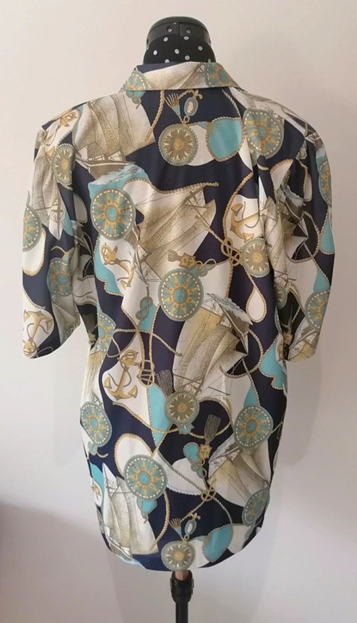 Chemisier marin boussoles, noeuds, ancres blanc bleu turquoise Taille L / XL oversize Vintage - photo numéro 9