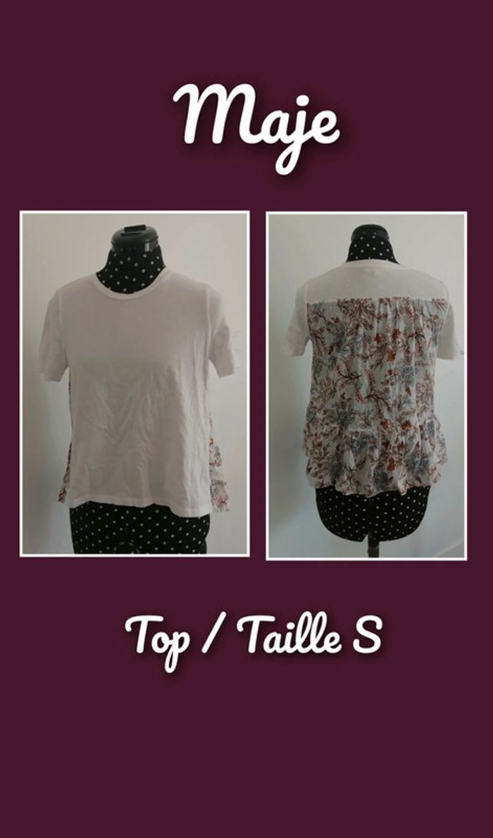 Top / tee-shirt blanc fleurs multicolores Taille S Maje - photo numéro 11