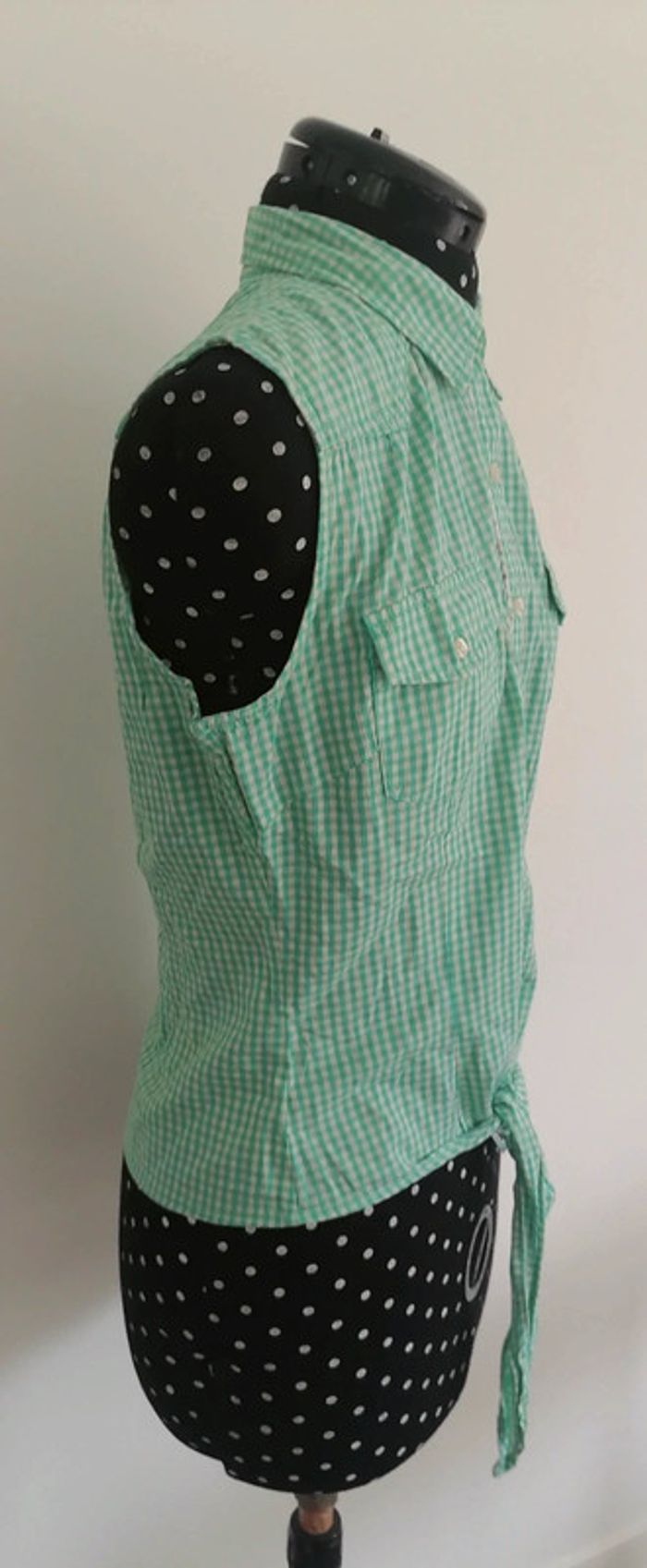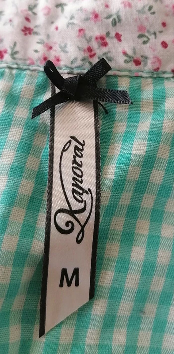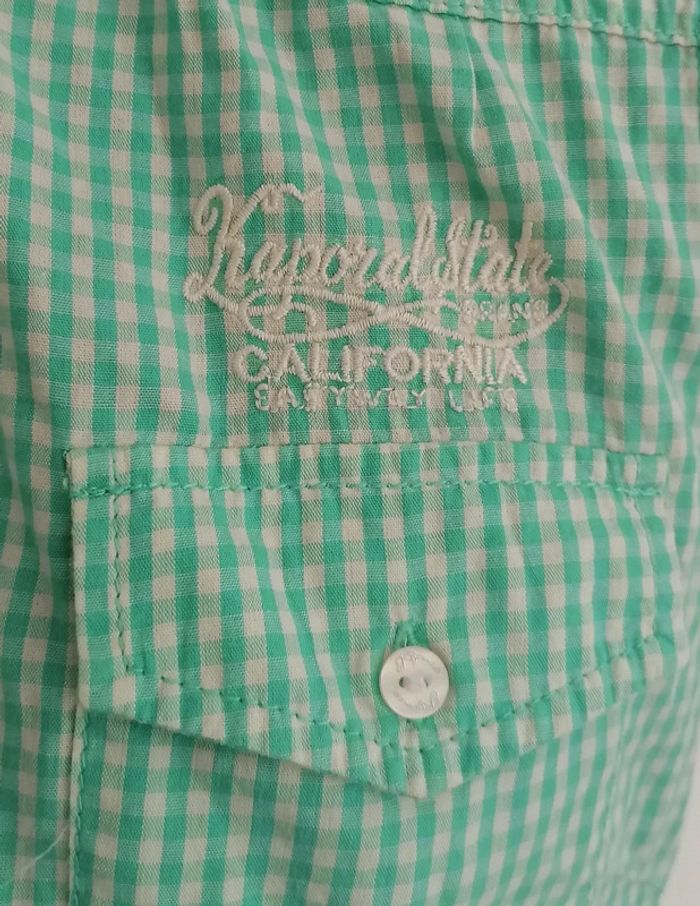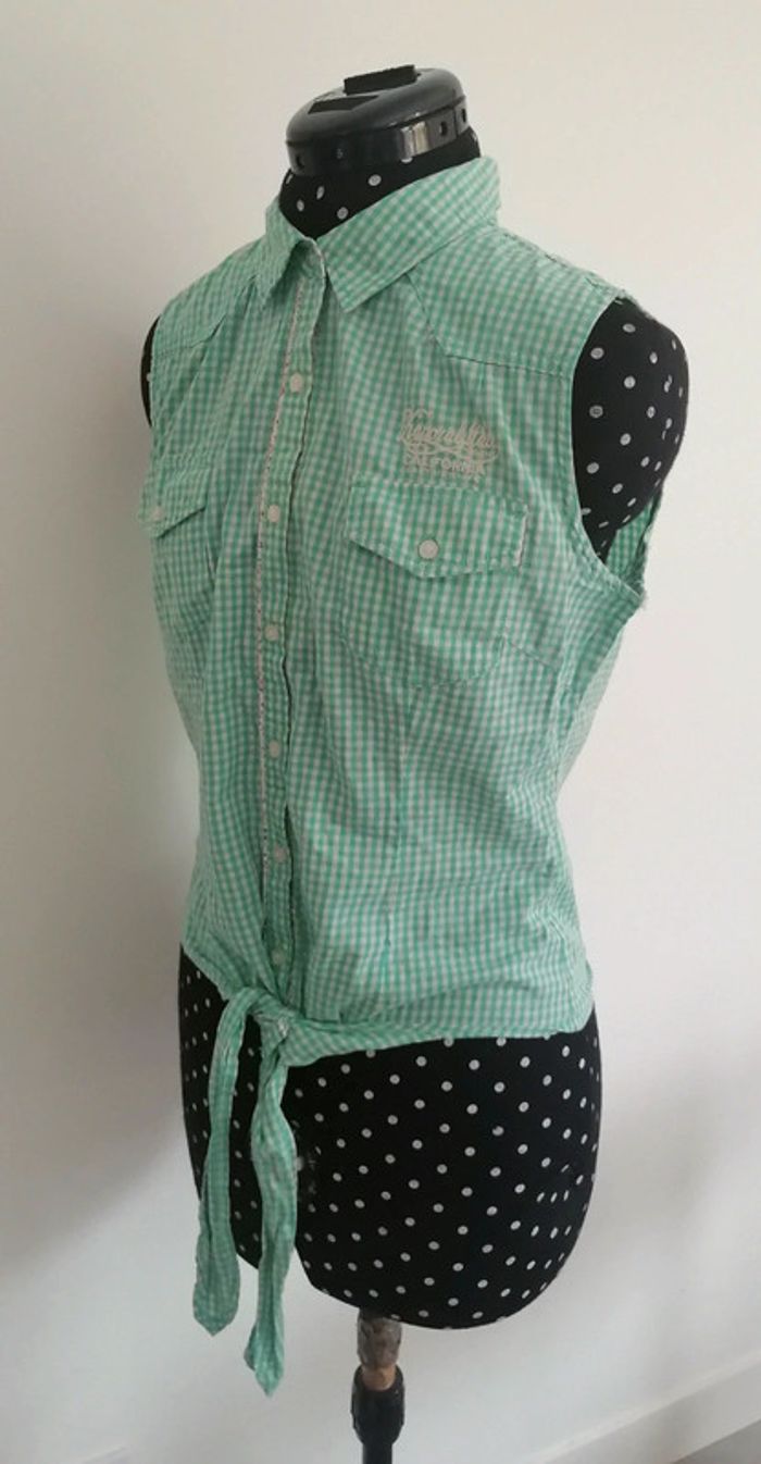 Top / chemise courte à noeuds vichy carreaux turquoise blanc Taille M Kaporal - photo numéro 9