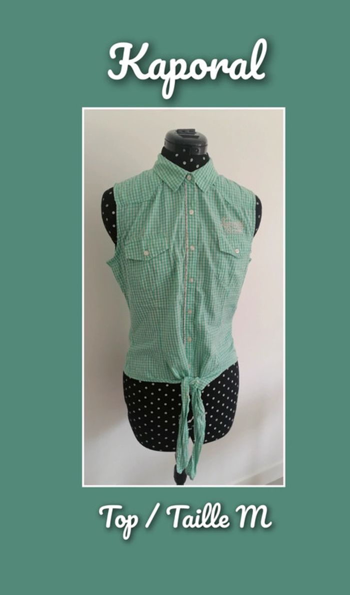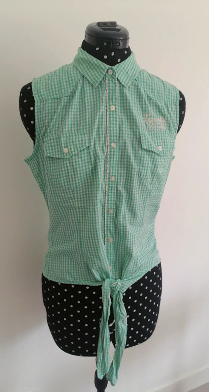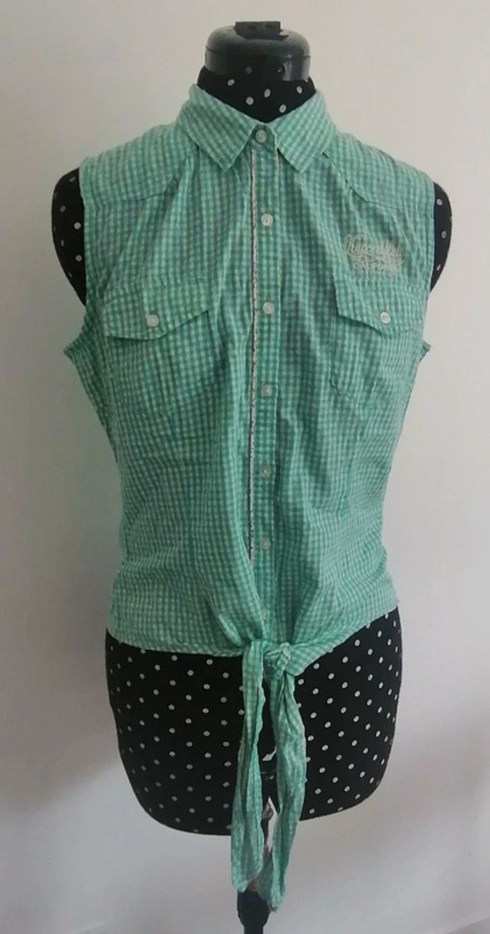 Top / chemise courte à noeuds vichy carreaux turquoise blanc Taille M Kaporal - photo numéro 1