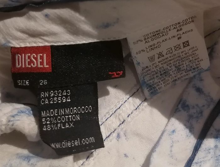 Superbe mini-jupe en lin et coton Style jean délavé, blanc et bleu Fermeture zip et boutonnière Tissu non strech, taille non élastique Pas de doublure Diesel Taille 26 = S Composition : 52% Coton 48% Lin Mesures à plat : Longueur : 44 cm Taille : 36 cm Hanches : 47 cm Prix d'achat ~ 85€ 🌟 Peu portée, très bon état général 🌟 🎁🎁🎁 Promo 1€ offert (en article) par tranche de 5€, voir ma description "à propos" pour lire les détails 🎁🎁🎁 #jupe #printemps #automne #jupetaille36 #été #diesel #taille36 #tailles #jean #jupecourte #femme #blanc #bizs33 #minijupe #bizs33jupe #bizs33taille36 #bizs33tailles P20N30