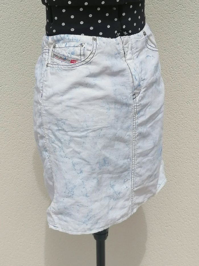 Mini jupe style jean délavé blanc bleu Taille 36 Diesel - photo numéro 2