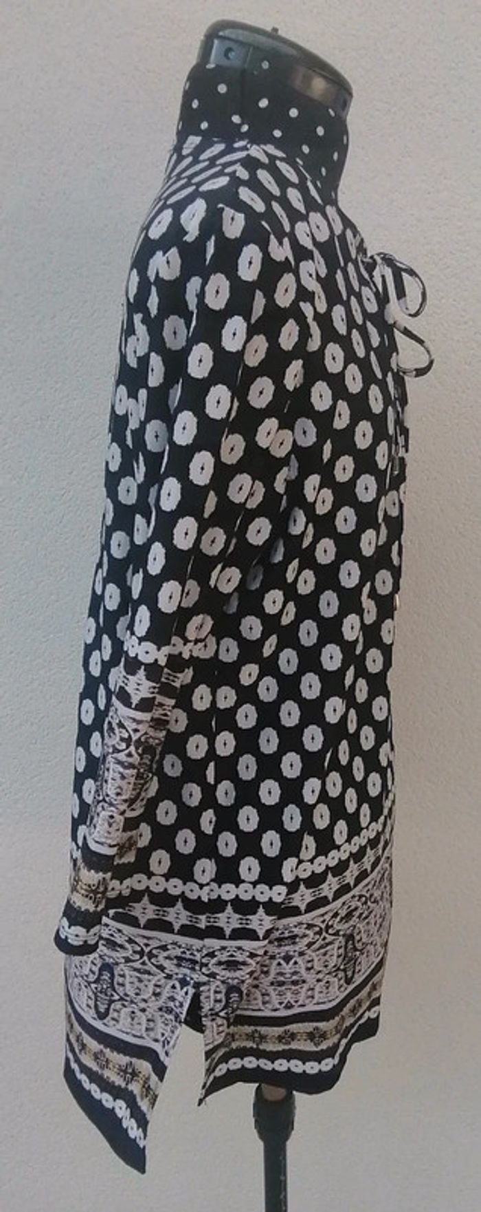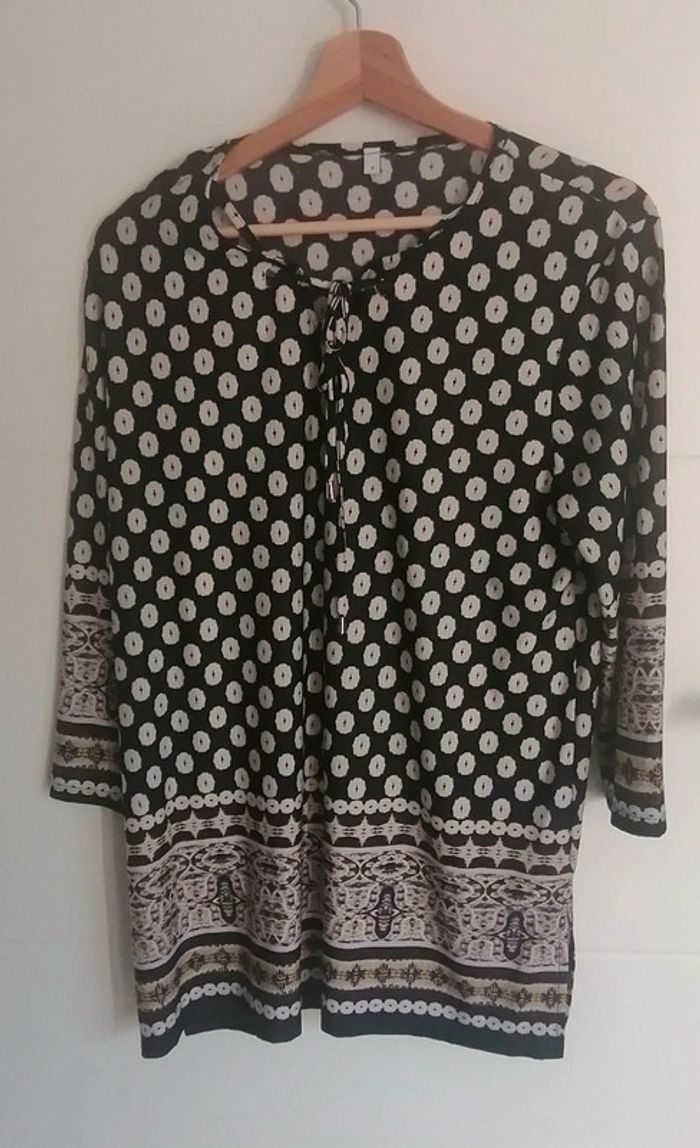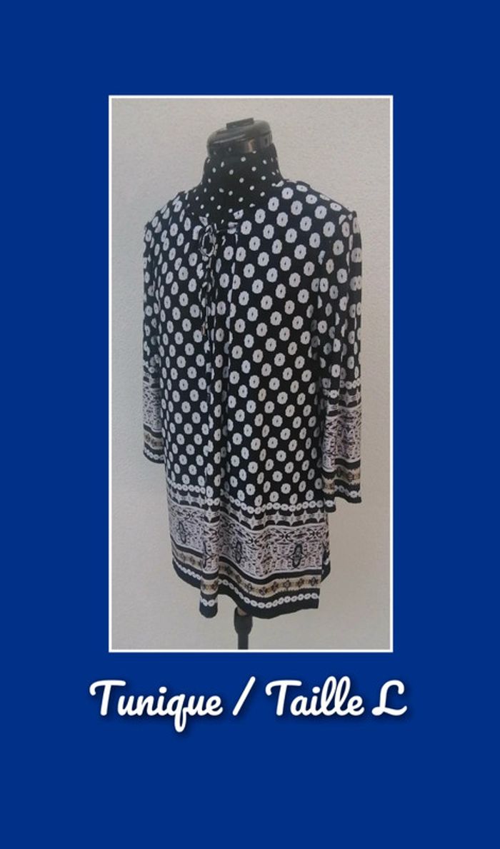 Jolie tunique fluide, légère, à imprimé éthnique Fond bleu marine, motif blanc et jaune Pas de fermeture, s'enfile simplement Manches longues, col avec lien à nouer Tissu stretch Pas de doublure, légèrement transparent Taille 3 = L Composition : 95% Polyester 5% Elasthanne Mesures à plat : Épaules : 41 cm Aisselles : 51 cm Longueur : 76 cm Prix d'achat ~ 42 € 🌟 Très peu portée, excellent état général 🌟 🎁🎁🎁 Promo 1€ offert (en article) par tranche de 5€, voir ma description "à propos" pour lire les détails 🎁🎁🎁 #teeshirt #fashion #top #haut #tshirt #blouse #teeshirttaille40 #tunique #printemps #topfemme #chic #haut #marine #bleu #blanc #bizs33taillel #bizs33taille40 #teeshirtfemme #bizs33top #bizs33 P20N36