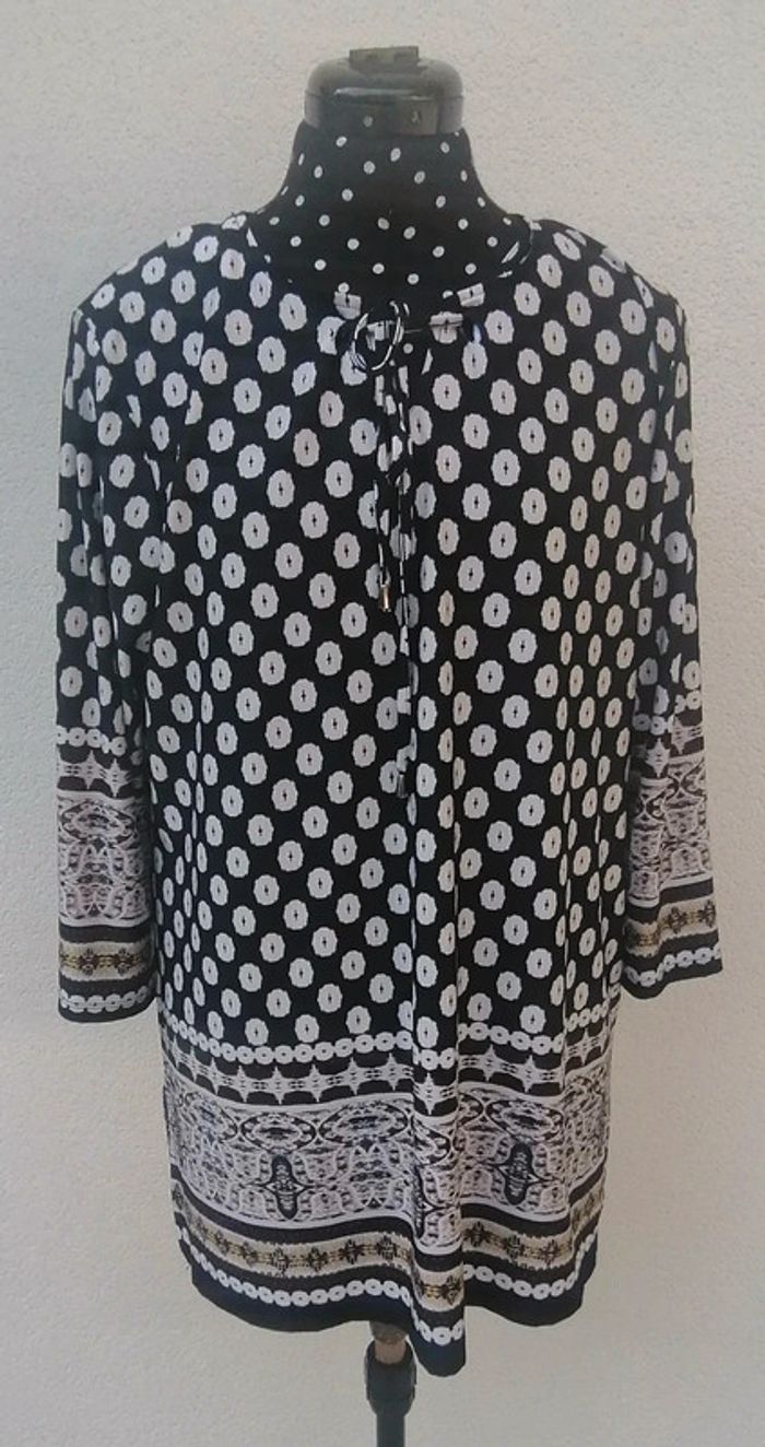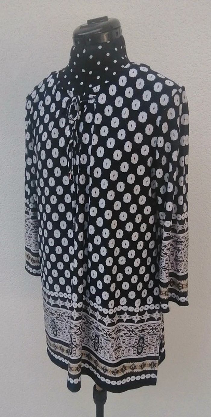 Tunique fluide légère ethnique marine blanc jaune Taille L - photo numéro 5