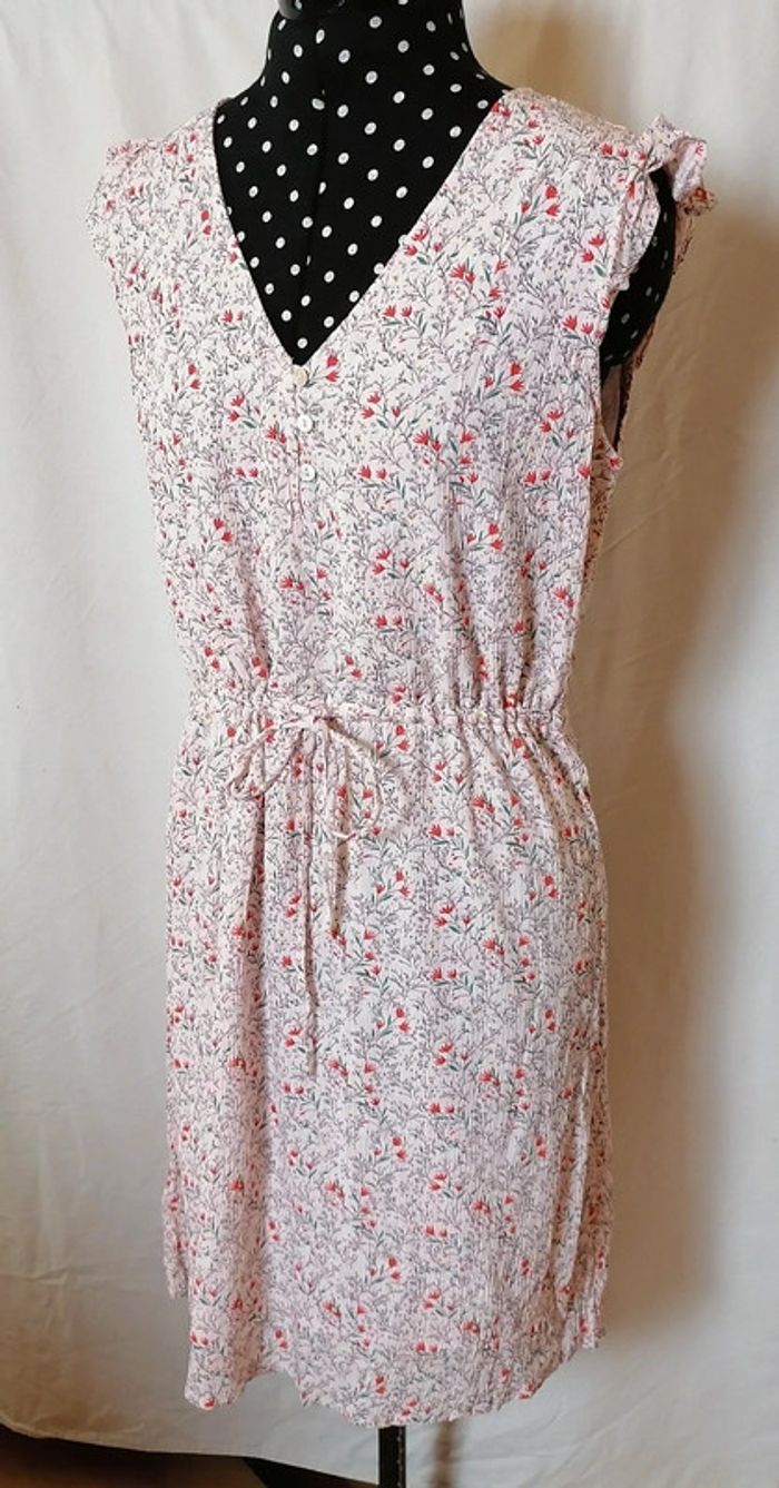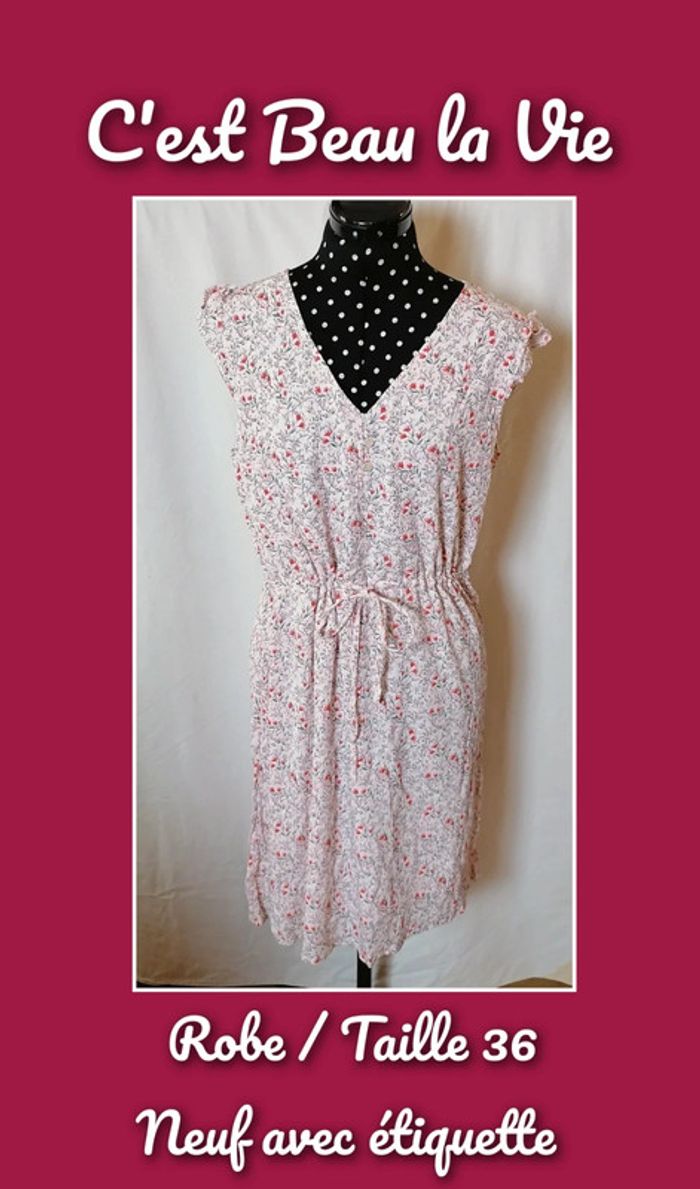 Superbe robe courte, légere, fluide à petites fleurs Fond rose clair poudré, motif multicolore Manches courtes à volants Lien à nouer à la taille Pas de fermeture, s'enfile simplement Tissu non stretch, taille non élastique Doublure blanche C'est beau la vie Taille 36 = S Composition : 100% Viscose Mesures à plat : Longueur : 90 cm Épaules : 37 cm Aisselles : 47 cm Taille : 44 cm Hanches : 53 cm Prix d'achat : 59.90€ 🌟 Jamais portée, neuve avec étiquette 🌟 #dress #mode #femme #robe #casual #tailles #robetailles #cestbeaulavie #fleurs #robetaille36 #taille36 #casual #rose #clair #poudré #blanc #robe #bizs33 #bizs33robe #bizs33tailles #bizs33taille36 P20N37