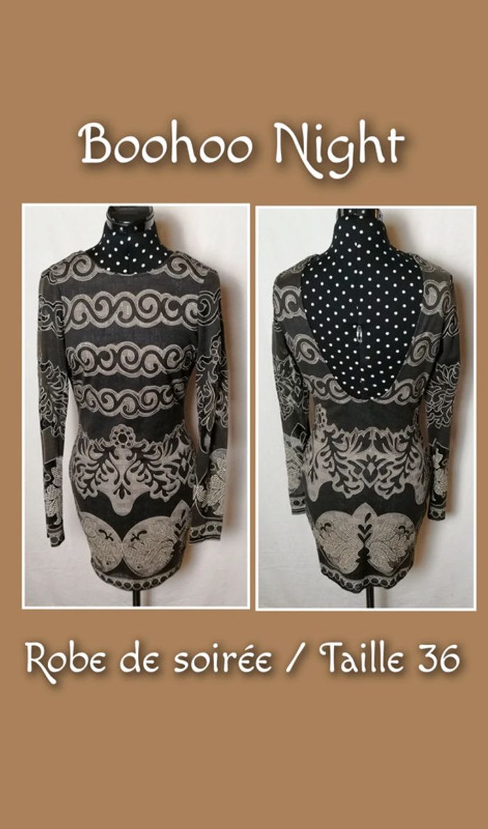 Robe dentelle ajourée décolté dos noir beige Taille S ou 36 Boohoo Night