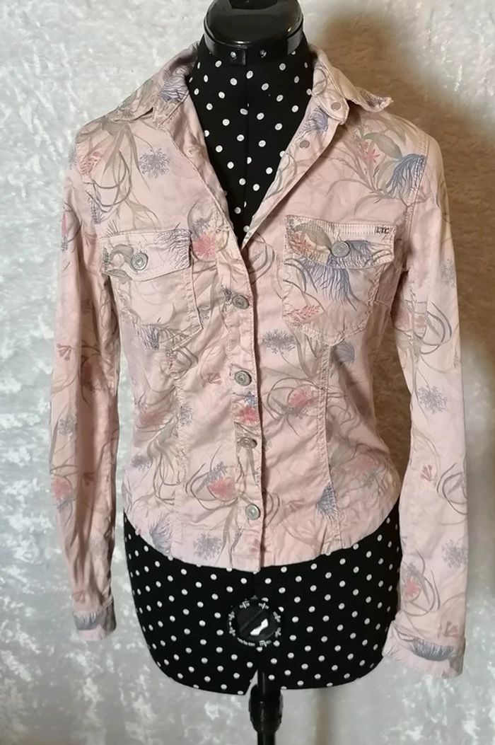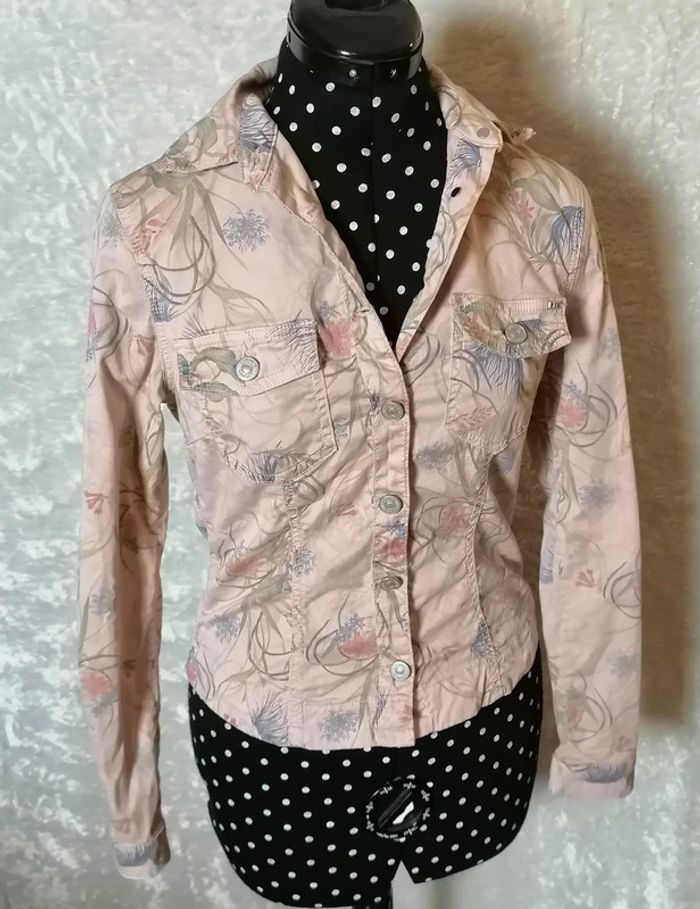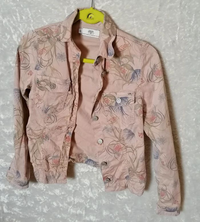 Veste en Jean saumon vert orange bleu fleurs tropicales Taille S Le temps des Cerises
