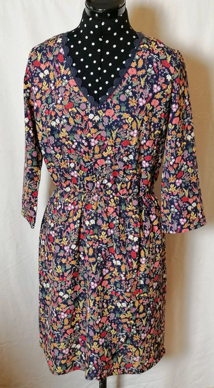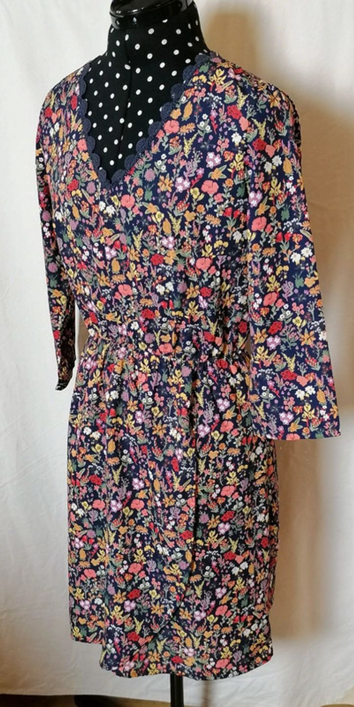 Robe à fleurs bleu marine et multicolore dentelle taille 36 C'est beau la vie - photo numéro 6