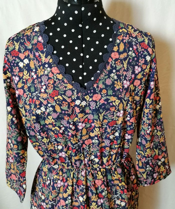 Robe à fleurs bleu marine et multicolore dentelle taille 36 C'est beau la vie - photo numéro 9