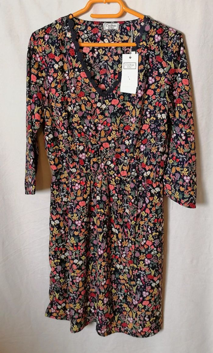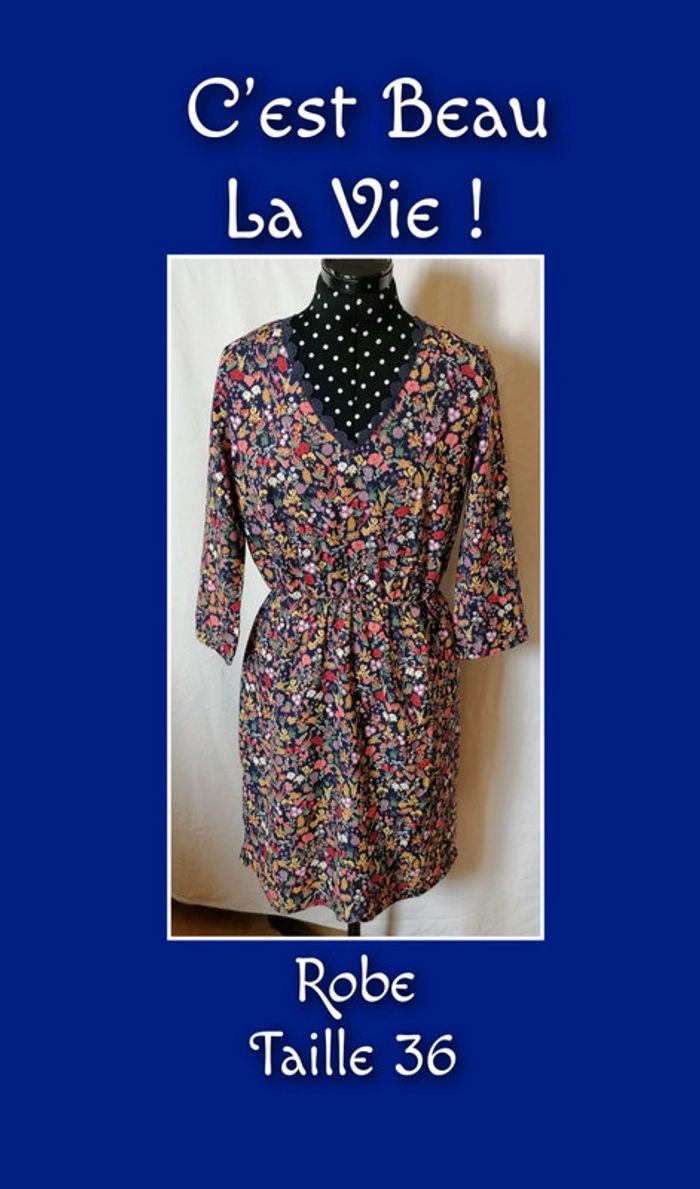 Robe à fleurs bleu marine et multicolore dentelle taille 36 C'est beau la vie - photo numéro 1