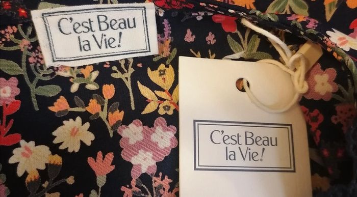 Magnifique robe à fleurs Col en V en dentelle, manches 3/4 Fond bleu, motif multicolore Pas de fermeture, s'enfile simplement Tissu non extensible, taille élastique Doublure bleu marine C'est Beau la Vie Taille 36 Composition : 100% Polyester Doublure : 100% Polyester Mesures à plat : Longueur : 95 cm Épaules : 37 cm Aisselles : 47 cm Taille : 33 -> 45 cm (élastique) Hanches : 56 cm Prix d'achat : 59.95€ 🌟 Jamais portée, neuve avec étiquette 🌟 🎁🎁🎁 Promo 1€ offert (en article) par tranche de 5€, voir ma description "à propos" pour lire les détails 🎁🎁🎁 #dress #mode #femme #robe #casual #été #tailles #robetailles #robetaille36 #taille36 #fleurs #cestbeaulavie #robechic #bleu #multicolore #robe #bizs33 #bizs33robe #bizs33tailles #bizs33taille36 P17N55