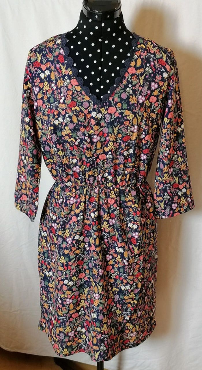 Robe à fleurs bleu marine et multicolore dentelle taille 36 C'est beau la vie - photo numéro 13